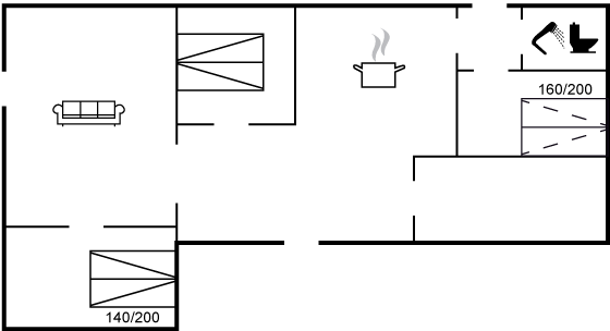Sommerhuset har god plads til hygge og samvær – både inde og ude – med plads til hele familien. Nyd haven, grill om aftenen og hyg indendørs.