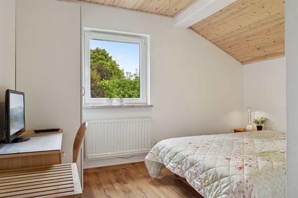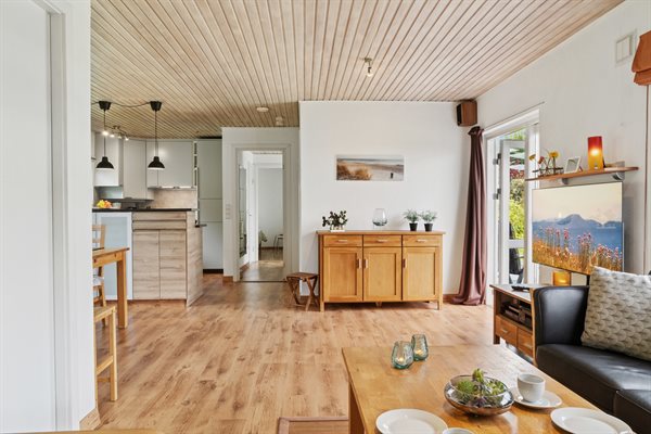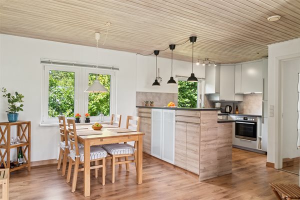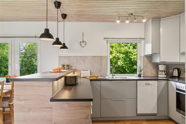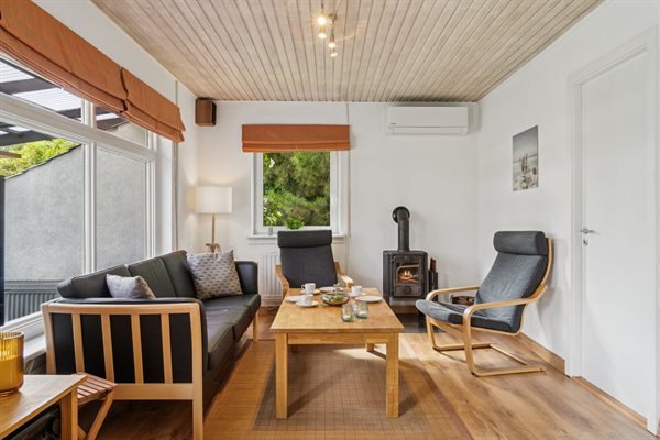 Velholdt sommerhus beliggende på en ugenert grund i et roligt og børnevenligt sommerhusområde for enden af en blind vej. Den smukt anlagte have er 1100 m² stor og med parkeringsplads på grunden. Huset ligger i gå-afstand til badestranden og nær den smukke by Gilleleje, med sin hyggelige og attraktive havn. Fra Gilbjergstien kan man nyde den fantastiske solnedgang. Desuden er der kun ca. 50 min. kørsel med bil eller tog til København. Huset egner sig til 5 personer. Ferieboligen er på 86 m² og blev bygget i 1961. Huset blev renoveret i 2012 og udbygget i 2013 med nyt badeværelse med gulvvarme, bruseniche, toilet og 2 store soveværelser. Der er i alt 3 soveværelser. Sovepladserne fordeler sig på 4 sovepladser i dobbeltsenge og 1 soveplads på en sovesofa. Fra stuen er der udgang til en 21 m² overdækket terrasse og en 18 m² åben terrasse med havemøbler. En fast havegrill står til rådighed. Køkkenet er nyt (2022) og er bl.a. udstyret med et køleskab med fryser, komfur med 4 elkogeplader og bageovn samt opvaskemaskine. Der er desuden en brændeovn. I ferieboligen er der et TFT-Smart-TV, DVD-afspiller og stereoanlæg. Via antennen/satellitanlægget kan der modtages flere danske og internationale kanaler, såsom svenske, tyske og engelske kanaler. Der er hurtig ubegrænset internet til rådighed med trådløs forbindelse (WIFI) og der er installeret energibesparende varmepumpe. Til de mindste feriegæster findes der rejse-barneseng (60 x 120 cm) og høj barnestol. Det er ikke tilladt at medbringe husdyr. En centralt beliggende feriebolig og et godt udgangspunkt for aktiviteter for hele familien.