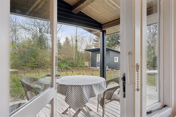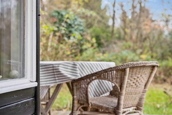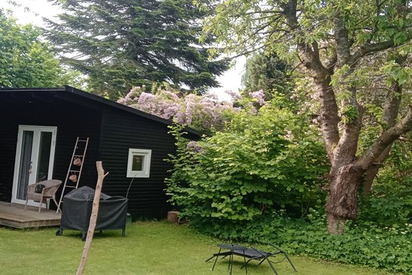 Den omkringliggende have er ugeneret og indrettet med solrige kroge, en bålplads til sommernætter og masser af plads til leg og afslapning.