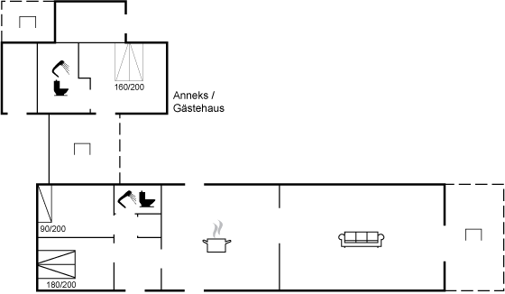 Det rummelige køkken lægger op til fælles madlavning og hyggelige stunder. Udenfor indbyder flere dejlige terrasser til måltider i solen eller i skyggen – alt efter tidspunktet på dagen. I den store have er der god plads til leg og boldspil, og når aftenen falder på, kan I tænde lanternerne og slutte dagen af med en hyggelig grillmiddag under åben himmel.
