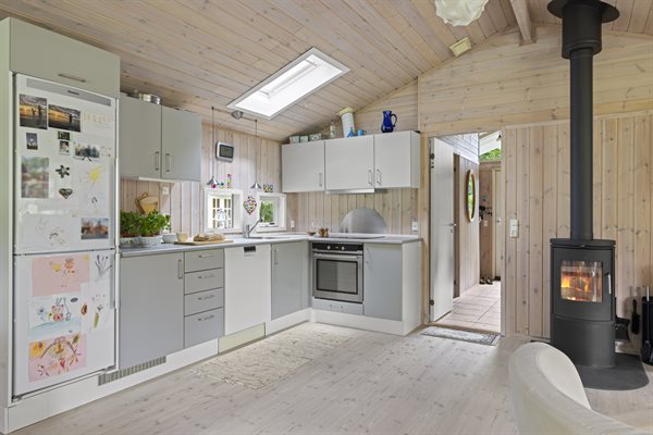 Sommerhuset har et åbent køkken-alrum, stue med brændeovn, flere gode soveværelser samt et badeværelse. Udendørs en dejlig have med terrasse, ideel til ophold og udendørs måltider i sommerhalvåret.