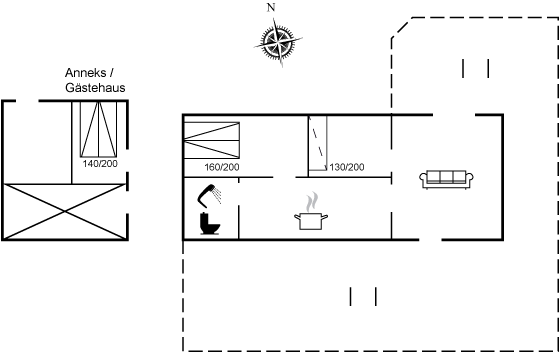 I selve huset er der 2 soveværelser, hvor der i det ene soveværelse er en dobbeltseng og i det andet en sovesofa (måler 130x200 cm.). I det hyggelige anneks er en dobbeltseng.