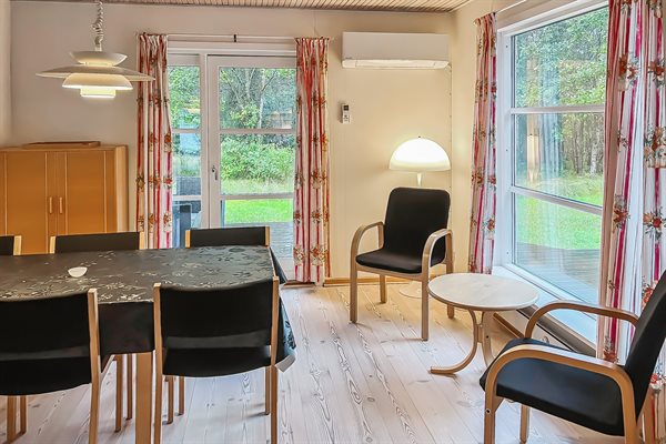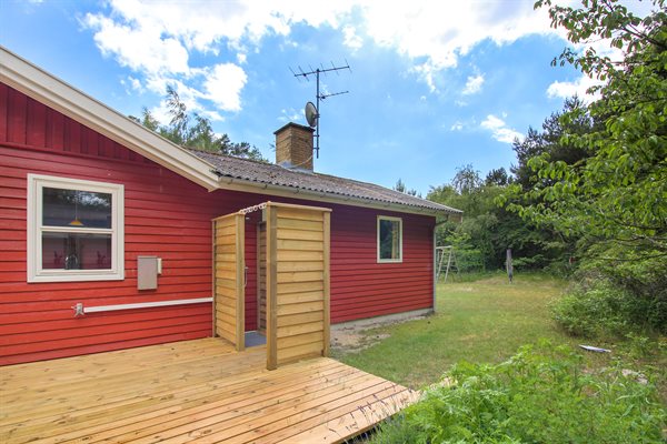 Hyggeligt sommerhus i træ, beliggende på en større, ugeneret grund, nær sandstranden i Vestre Sømark. Grunden er omkranset af varieret bevoksning - nænsomt klippet til, så grunden er lys, men samtidigt afskærmet for vind og vejr. Til huset hører flere terrasser af træ. Huset ligger ved en blind vej. Sømarken er et attraktivt område, hvor I kan nyde naturen, strandene og skovens dyreliv på nærmeste hold.