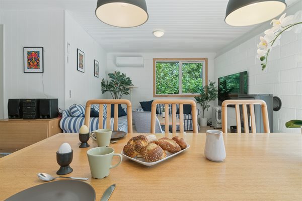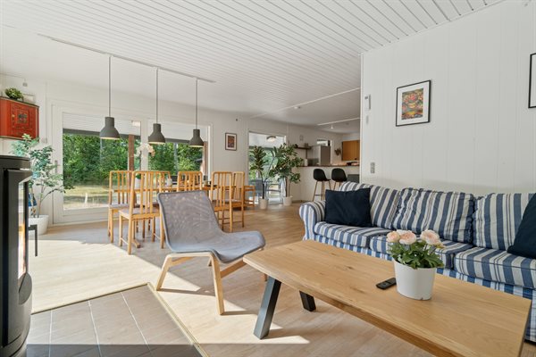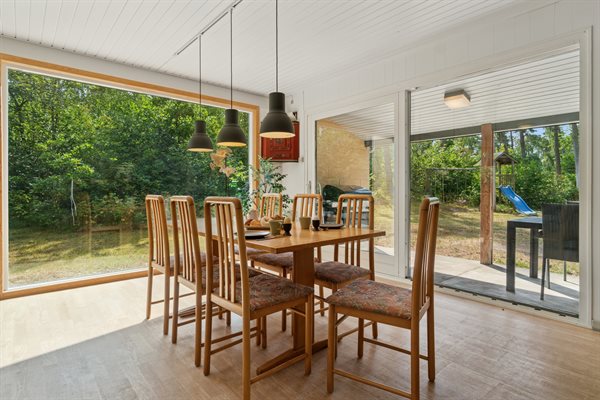 Dette sommerhus er beliggende i et roligt område på en naturgrund, der grænser op til skovbevokset område, ikke langt fra den fine sandstrand ved Dueodde.