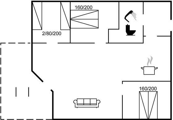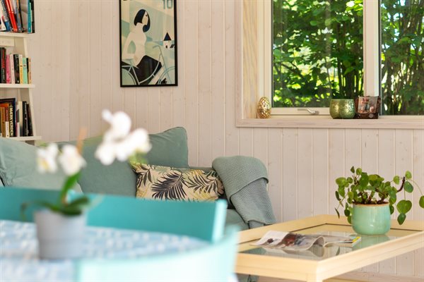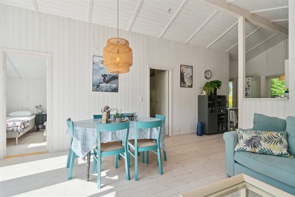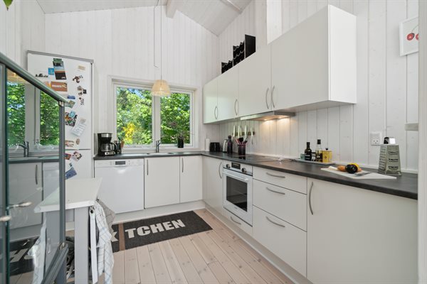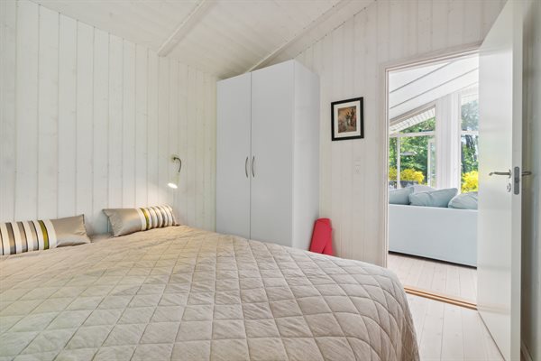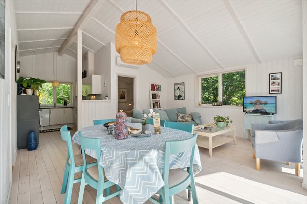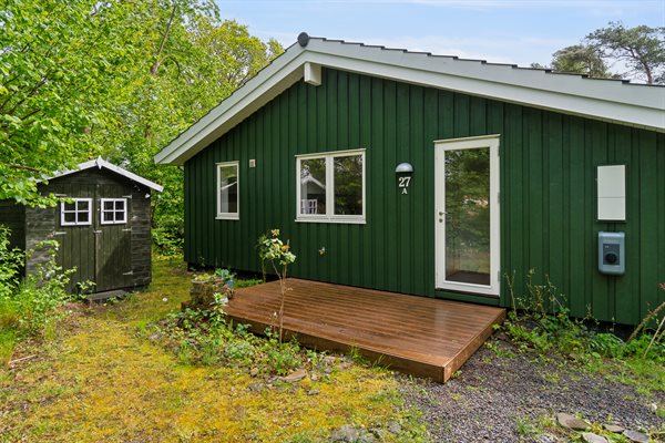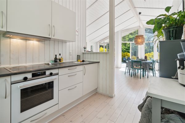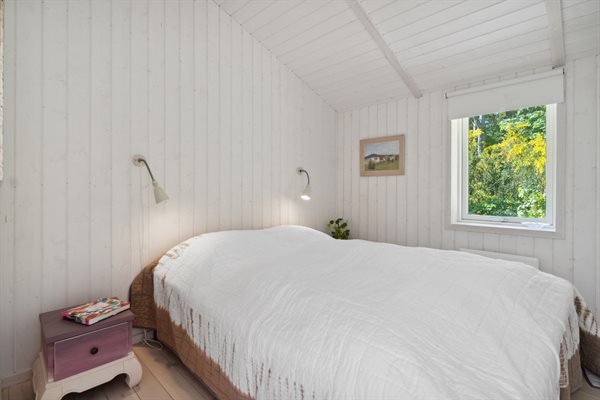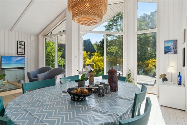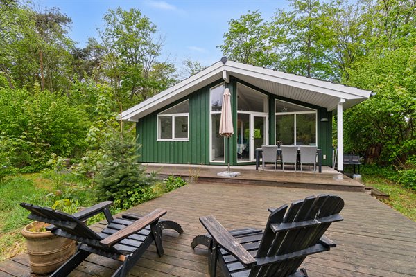 Stort vinduesparti direkte ud i naturen, der omgiver sommerhuset, med en større terrasse, hvor solen kan nydes. Snogebæk ligger nær og byder både på supermarked, restauranter, håndlavet chokolade, detailbutikker, pizzeria og Sørens Værtshus.