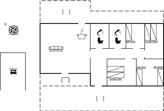 Huset er indrettet med stue kombineret med det åbne køkken og 4 soveværelser, så der er god plads til hele familien. 2 badeværelser er godt at have, når man kan være op til 7 personer i huset. I stuen kan den hyggelige brændeovnen være samlingspunktet, når spil, TV og andre familieaktiviteter kalder på nærvær. Fra terrasserne, hvor der er både fredeligt og roligt kan fuglelivet i træerne følges fra 1. parket.