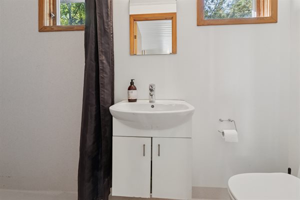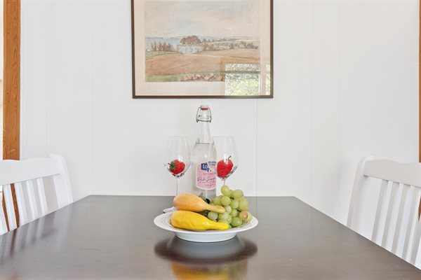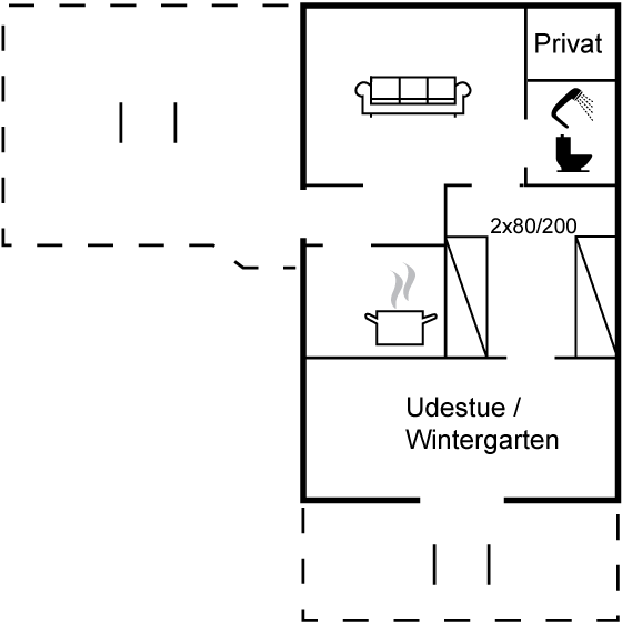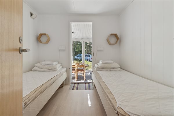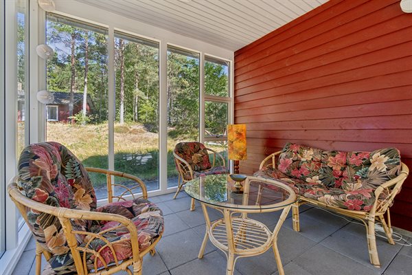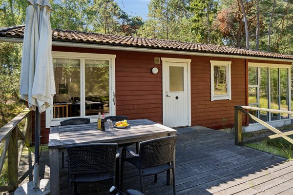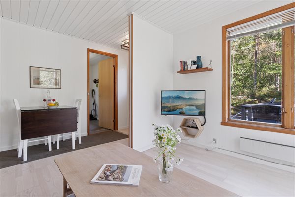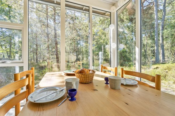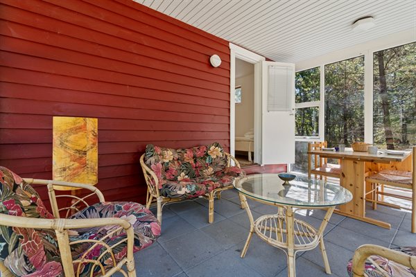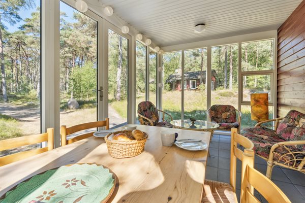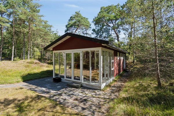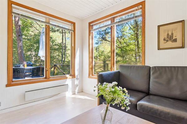 Husets terrasse indbyder til at nyde fuglenes fløjten - solens gang på himmelen - og hinandens selskab - måske til morgenkaffen. Indvendig finder man en lys stue, et separat køkken og naturligvis et badeværelse samt i et gennemgangsrum ud til udestuen et soveværelse. Udestuen giver virkelig fornemmelsen af at være et med naturen - man kan følge med i naturens gang fra tidlig morgen og til sen aften.