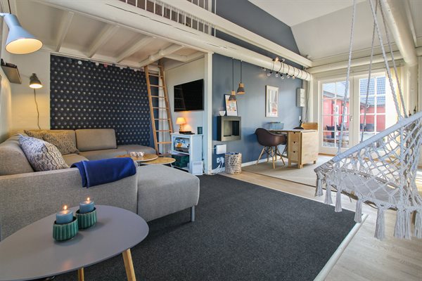 Denne dejlige ferielejlighed beliggende i Dams på Bakken lige uden for Aakirkeby. Dams på Bakken er et tidligere landsted fra 1870, der i 2006 er ombygget til ferielejligheder. Lejligheden ligger på et fællesareal med bl.a. udendørs swimmingpool (16 x 10 x 0,7-1,8 m), fodboldbane, bålplads samt legeplads med gynge og trampolin. I perioden fra den 15.6 til 15.9 (fra kl. 8:00 til kl. 20:00) opvarmes swimmingpoolen vha. varmepumpe. Det er muligt at benytte sig af vaskeriet på den nærliggende campingplads. Bemærk, at 2 af sovepladserne (madrasser) befinder sig på husets hems.