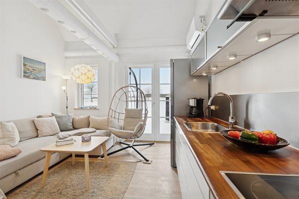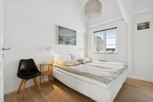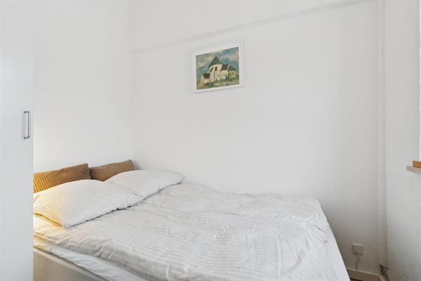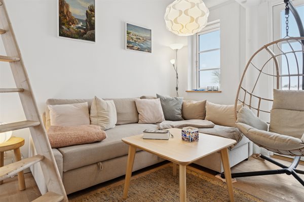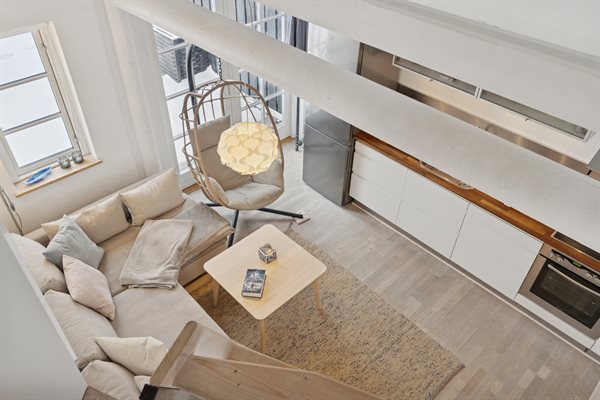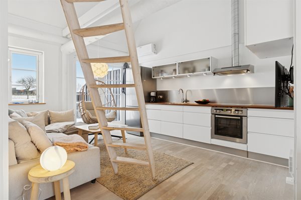 Indenfor bydes du velkommen af loft til kip, som giver en skøn rumfornemmelse og masser af lys. Allerede ved ankomst mærker man, at lejligheden er særdeles velholdt med lyse vægge og lofter. Opholdsrummet rummer både en hyggelig sofagruppe og en spiseplads i åben forbindelse med det velfungerende køkken, hvor der er alt, hvad du behøver – og god plads i køleskabet. Badeværelset er pænt, lyst og indbydende og er desuden udstyret med vaskemaskine.