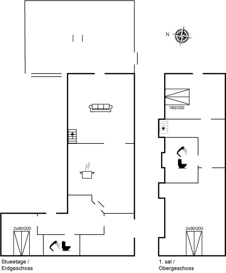 I TV-stuen er der forskellige spillekonsoller og et stort Smart-TV. Alle husets værelser har dobbeltsenge og der er badeværelse både i stueplan og på 1. sal. De er indrettet med den samme sjæl og charme som de øvrige rum i huset. Alle rum har gulvvarme fra et jordvarmeanlæg.