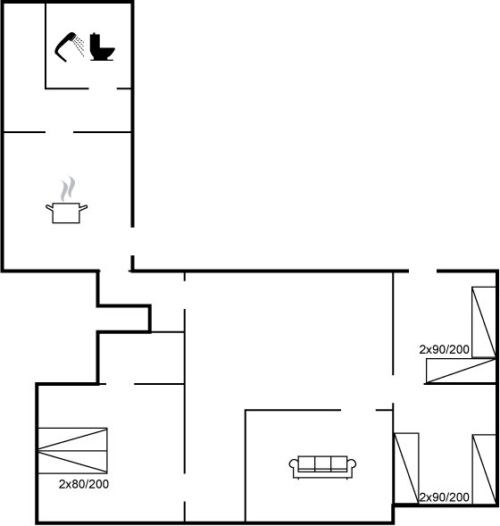 Der er i alt 3 soveværelser. Sovepladserne fordeler sig på: 2 sovepladser i dobbeltseng. 4 sovepladser i enkeltsenge. Derudover er der 1 stk. barneseng.