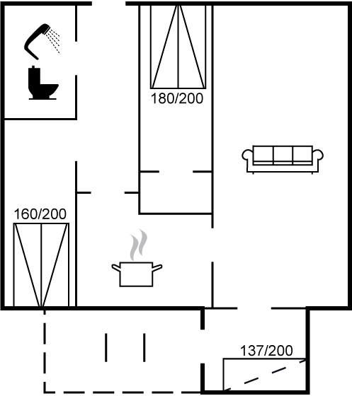 | 350 til vand | 5 pers. | 100 m2 | 2 soverum |