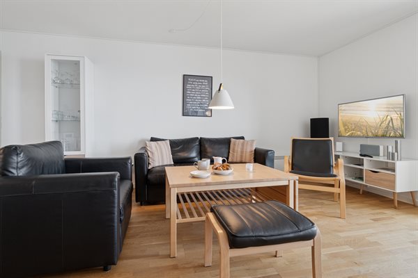Lejligheden er pænt indrettet og møbleret moderne og tidssvarende, så man får en god fornemmelse af komfort og velbehag under ferien. I stuen med den fine udsigt er der en moderne køkkenafdeling, og fra stuen har du direkte adgang til altan med plads for hygge. Indbydende badeværelse og velfungerende soveværelser. Ved indgangspartiet er der en lille terrasse, der hører til lejligheden. Men nyd også adgangen til de store fællesareler.