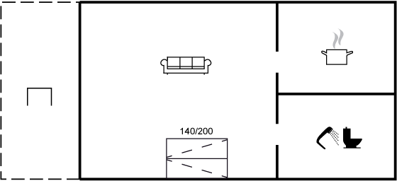 Lys ferielejlighed på 28 kvadratmeter beliggende med den fineste udsigt ud over markerne i det skrånende terræn og ud over Østersøen med Christians Ø i det fjerne. Ferielejligheden er indrettet med stue, mindre køkken og indbydende badeværelse. Køkkenet byder på køleskab, elkogeplader og miniovn. Dobbelt sovesofa i stuen.