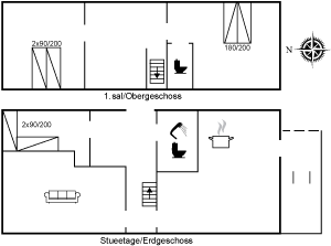 Der er i alt 3 soveværelser. Sovepladserne fordeler sig på: 4 sovepladser i dobbeltsenge. 2 sovepladser i enkeltsenge.