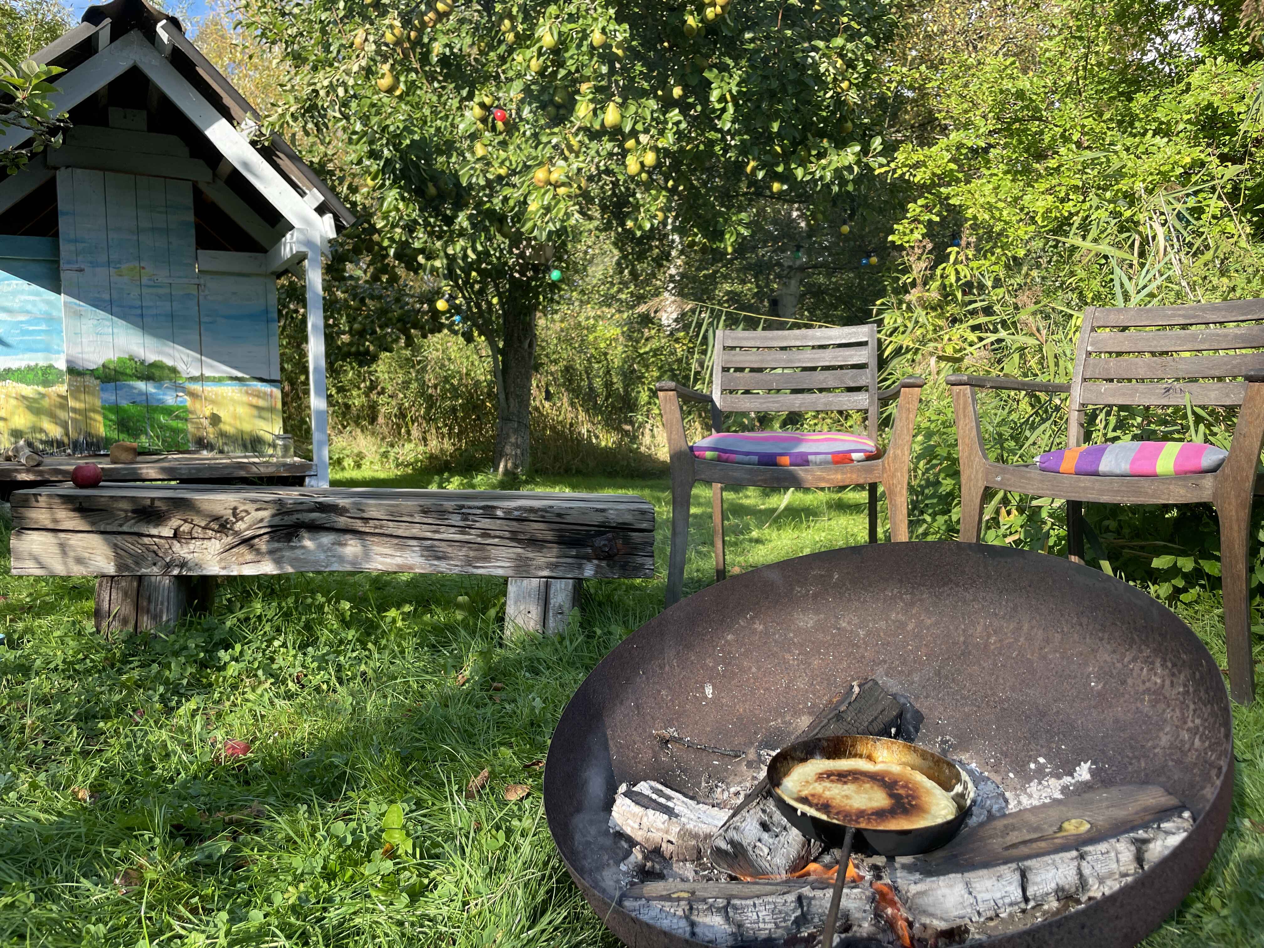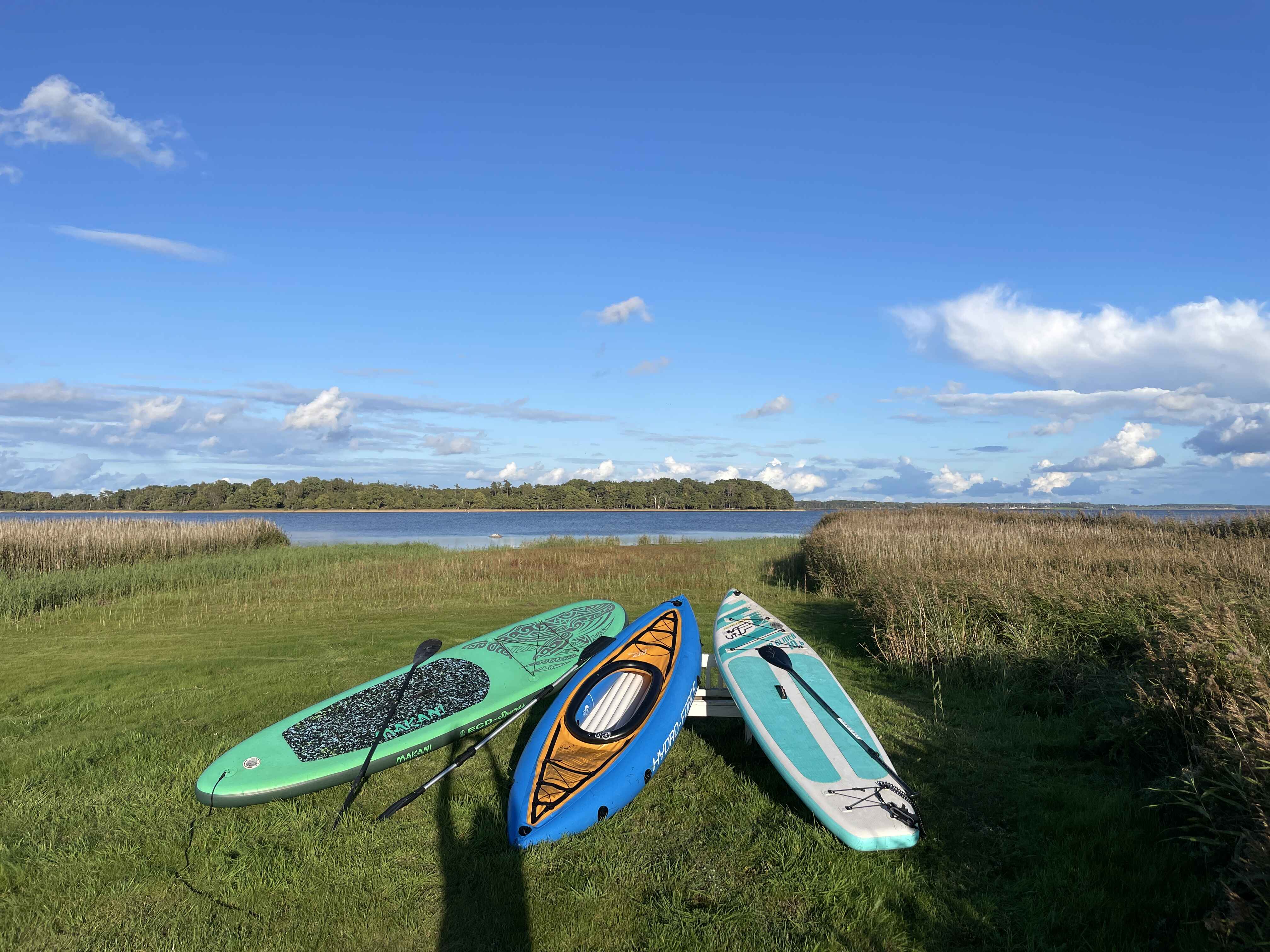 Her er der rum for afslapning, fugletræk, gåture i de omkringliggende skove, supboard-ture med direkte udgang fra haven, et dejligt varmt vildmarksbad eller alt muligt andet, som haven og området byder på. Spis alle måltider med udsigt.
