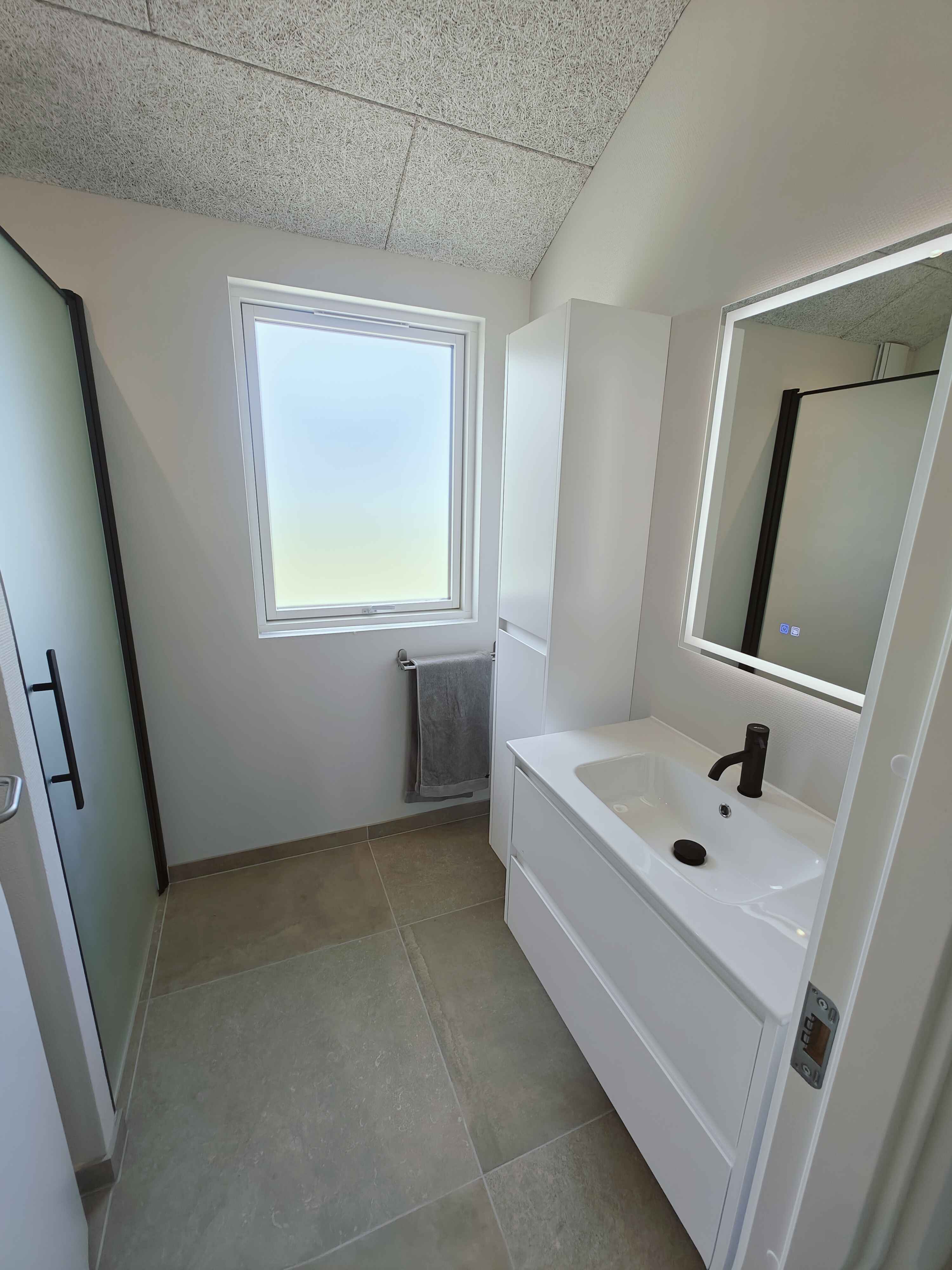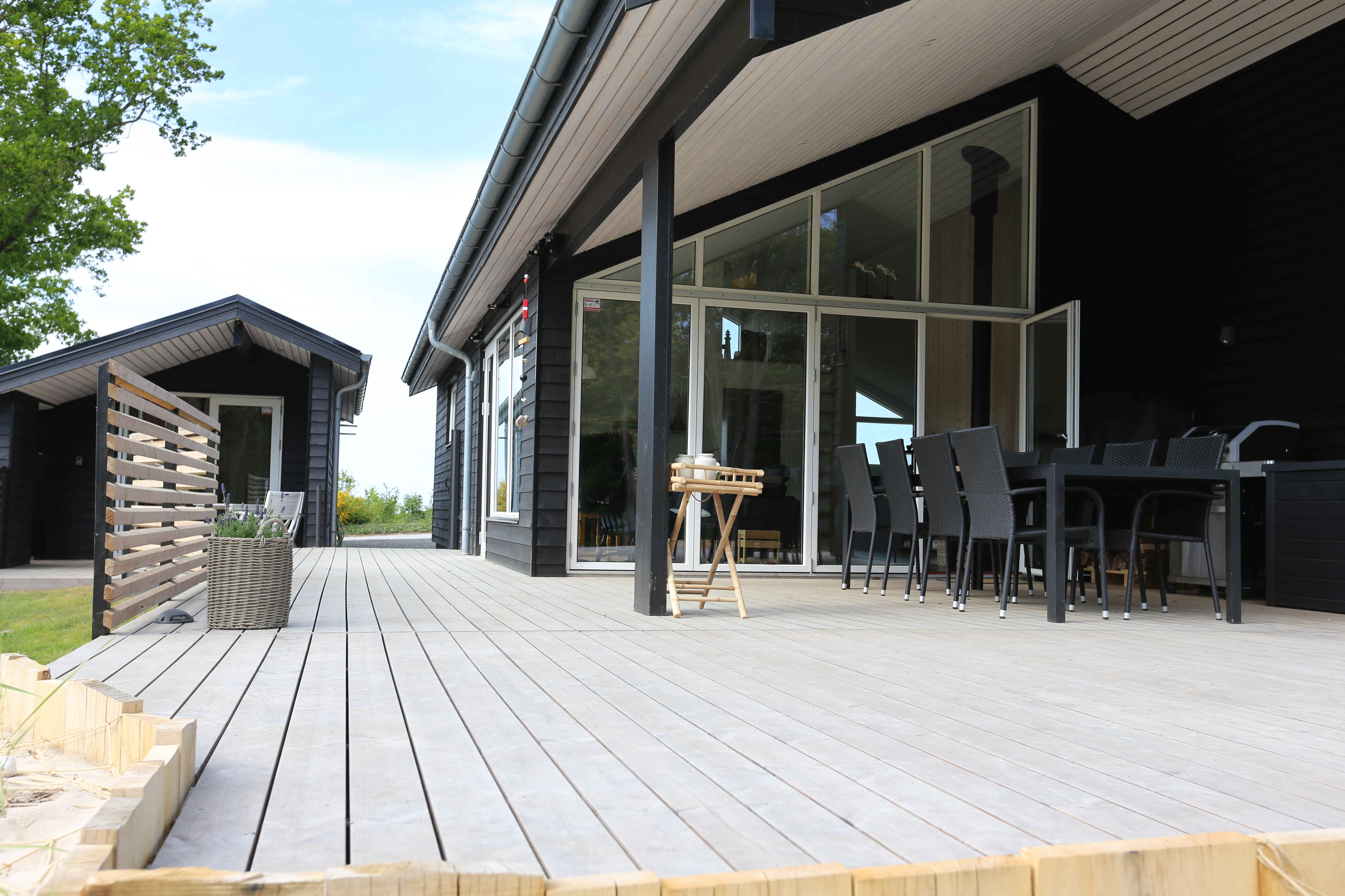 Når solen skinner, kan I åbne dørene og trække udenfor for at tilbringe dagen på mere end 120m2 træterrasse og nyde solen eller finde skygge under de 25m2 overdækket terrasse. Her giver de forskudte facader altid mulighed for at finde læ, skygge eller en dejlig solplet efter behov. Når mørket falder på, kan I nyde et glas vin i skumringen og mærke, hvordan roen sænker sig omkring jer, mens stjernerne titter frem på himlen over vandet.