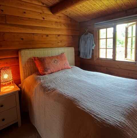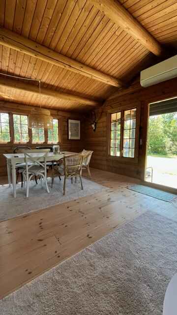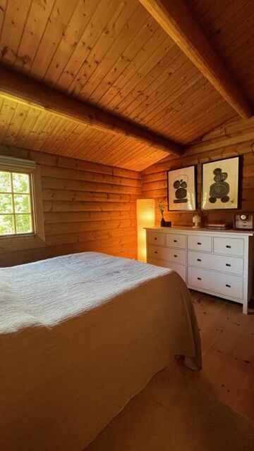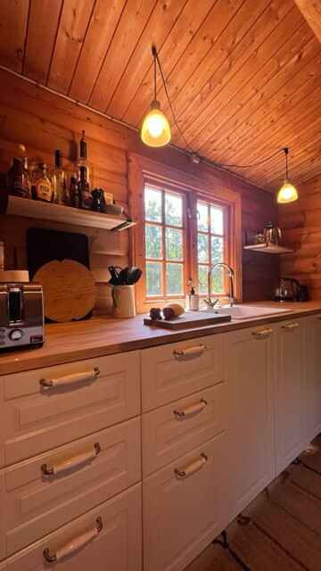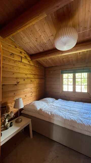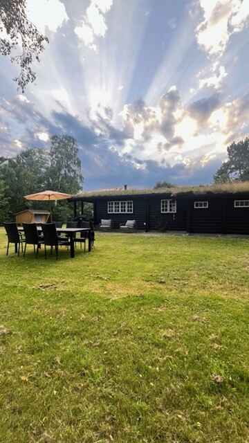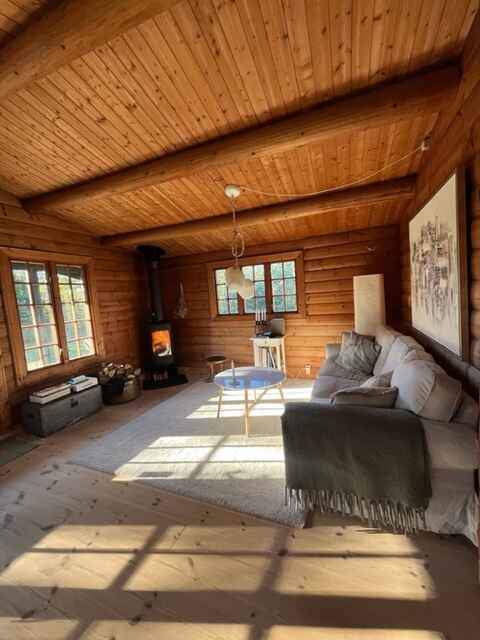 Autentisk norsk bjælkehytte med græs på taget - Her er lagt op til ro, hygge og nærvær.