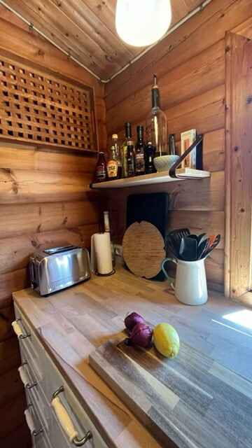 Nyd solen i haven med havemøbler, grill, hængekøjer og havespil eller overnat i det nye shelter.
