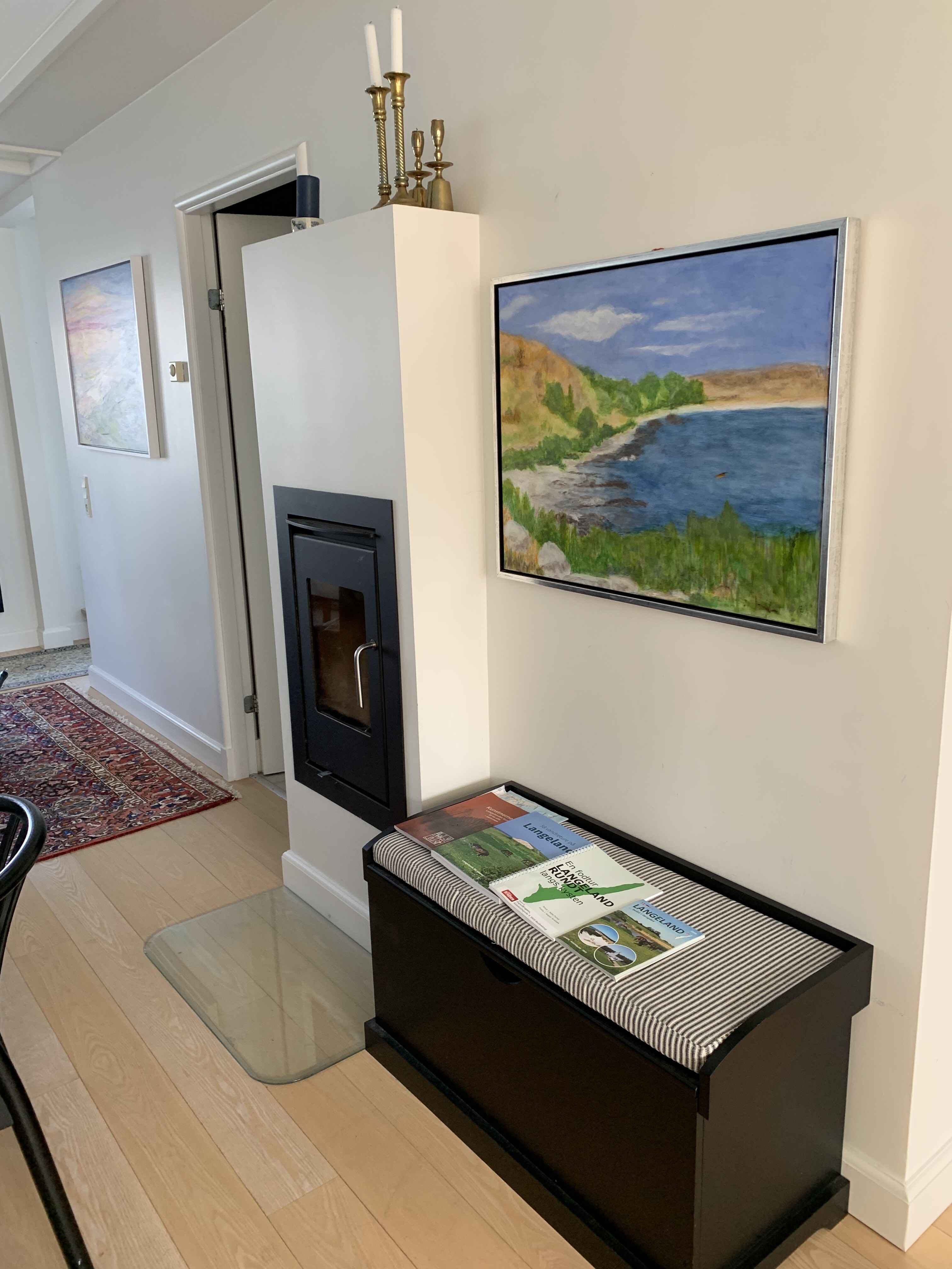 I reolen ligger bøger og kort til kystnære vandreture med rigt fugleliv. Tag kaffekoppen med ud og planlæg næste rute.
