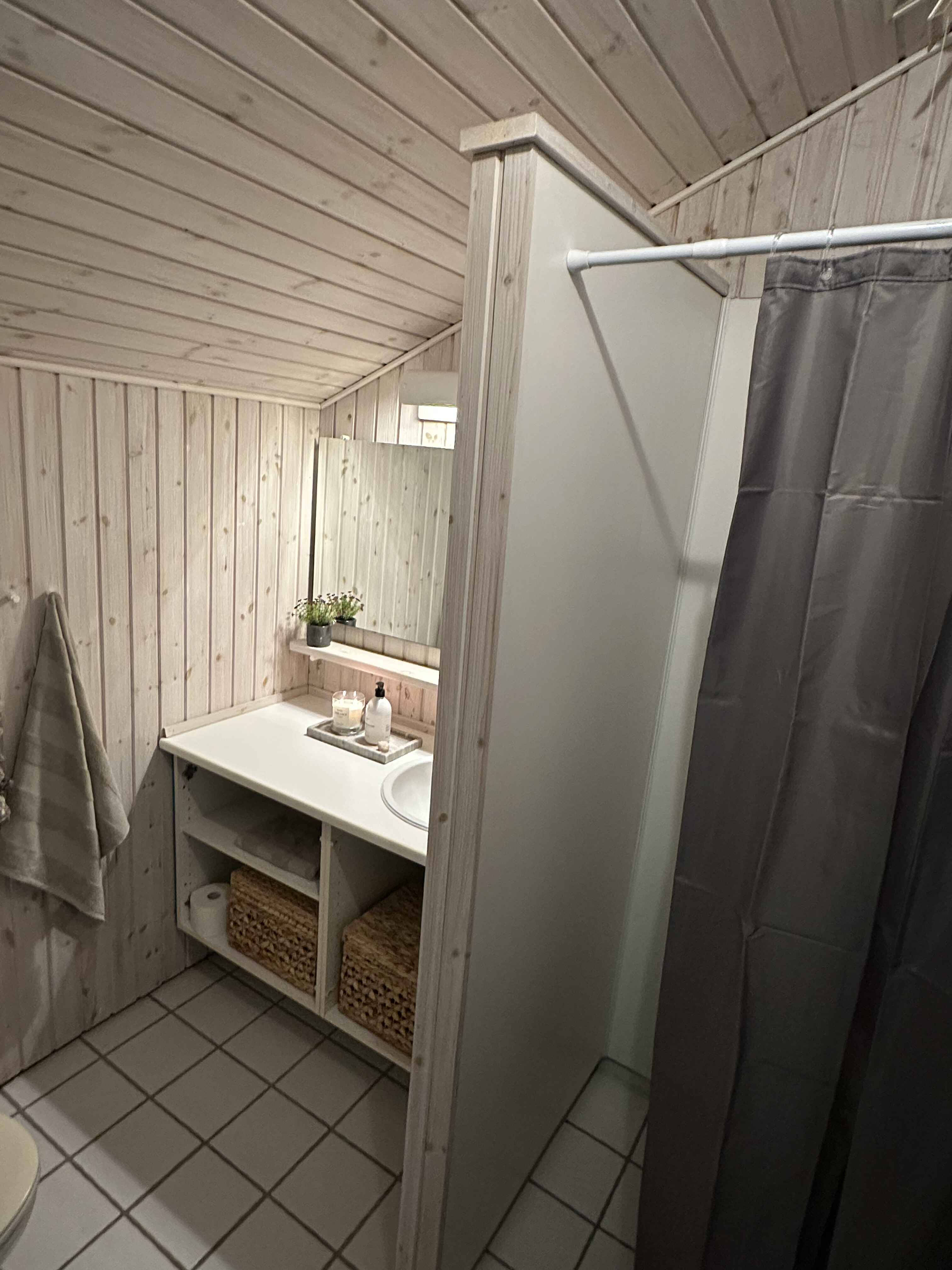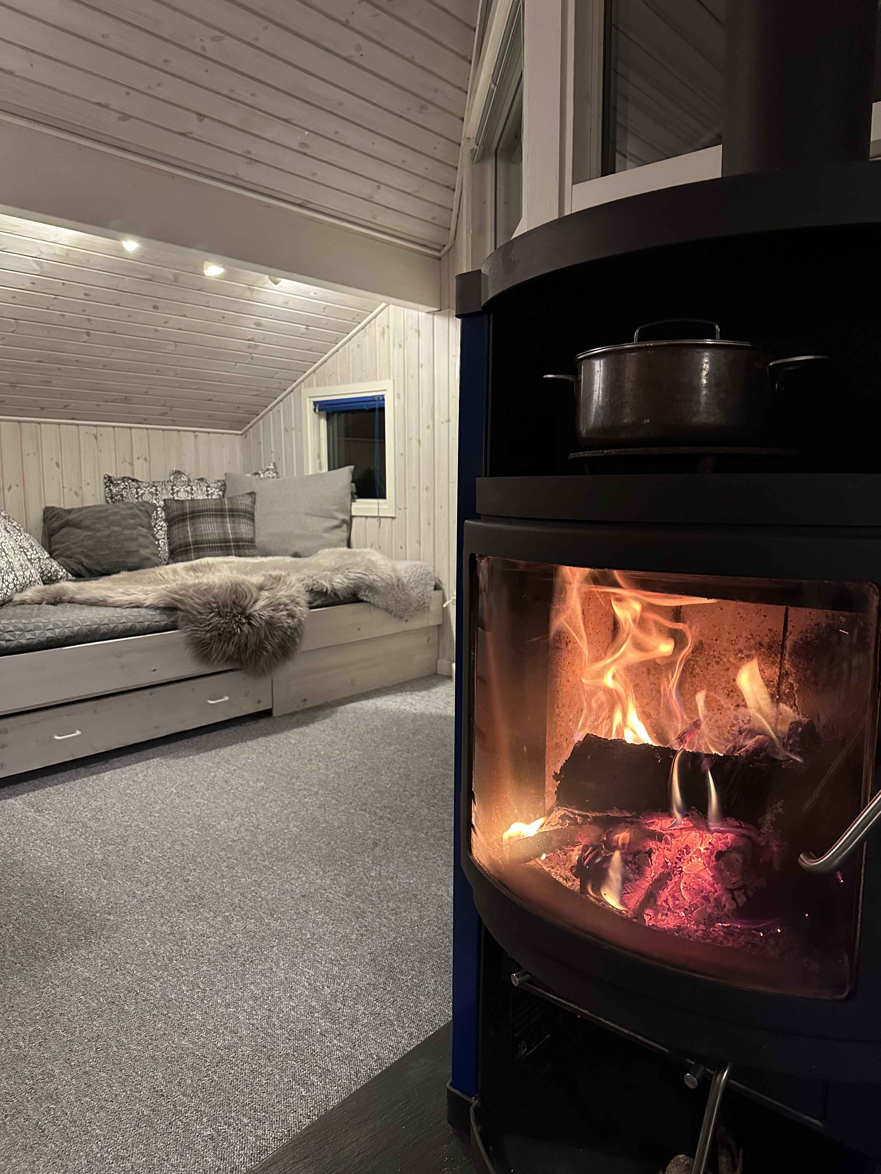 Indretningen er enkel og funktionel. To værelser har dobbeltsenge, mens det tredje har to enkeltsenge – perfekt til børn eller venner. Huset har både varmepumpe og brændeovn, så du kan holde varmen, uanset årstiden.