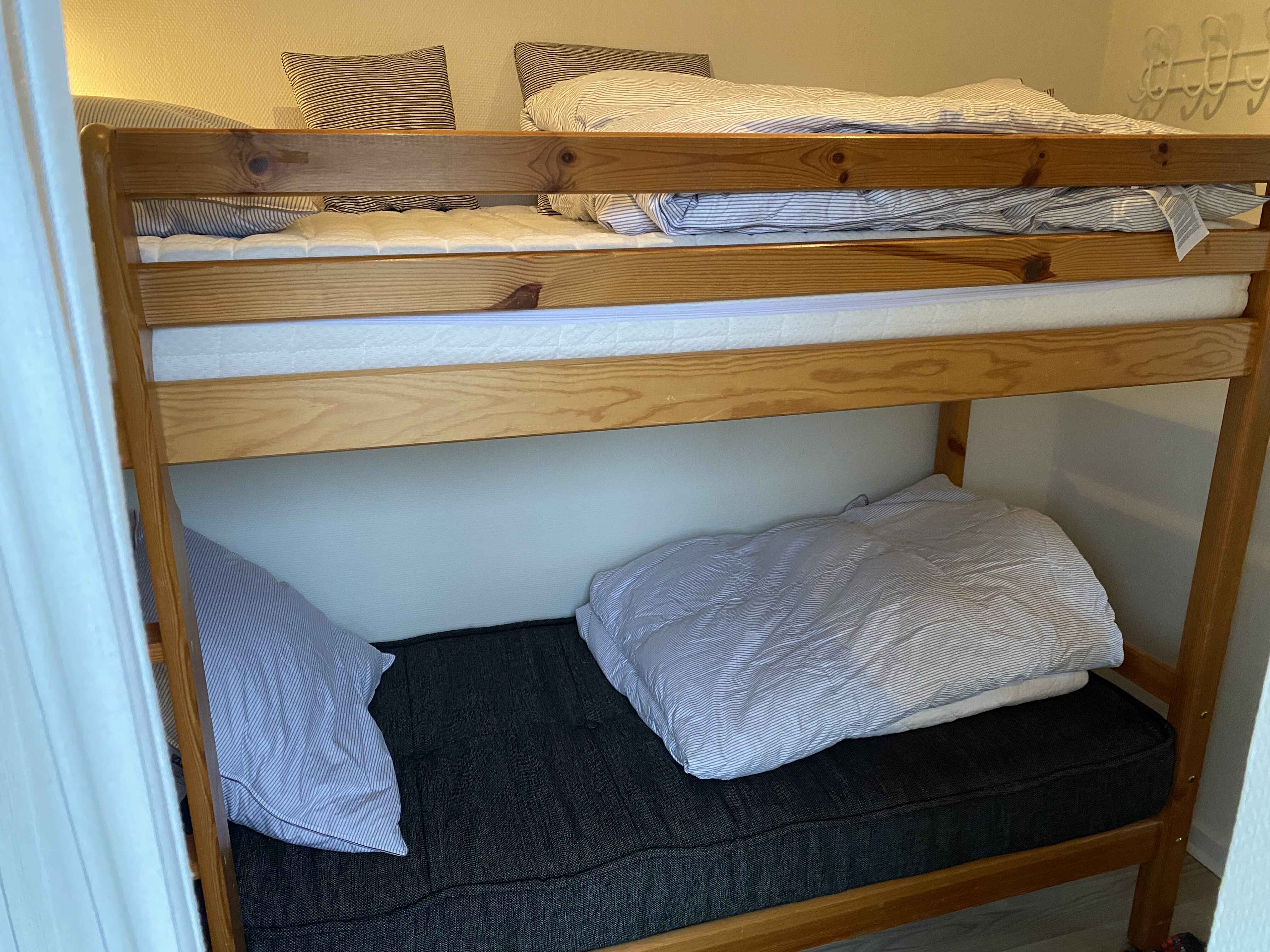 Kun 100 meter fra vandet ligger dette funktionelle sommerhus med plads til fem personer fordelt på tre separate soveværelser. Huset rummer 60 m² og er indrettet, så ferien kan nydes i afslappede rammer – både med familie og venner.