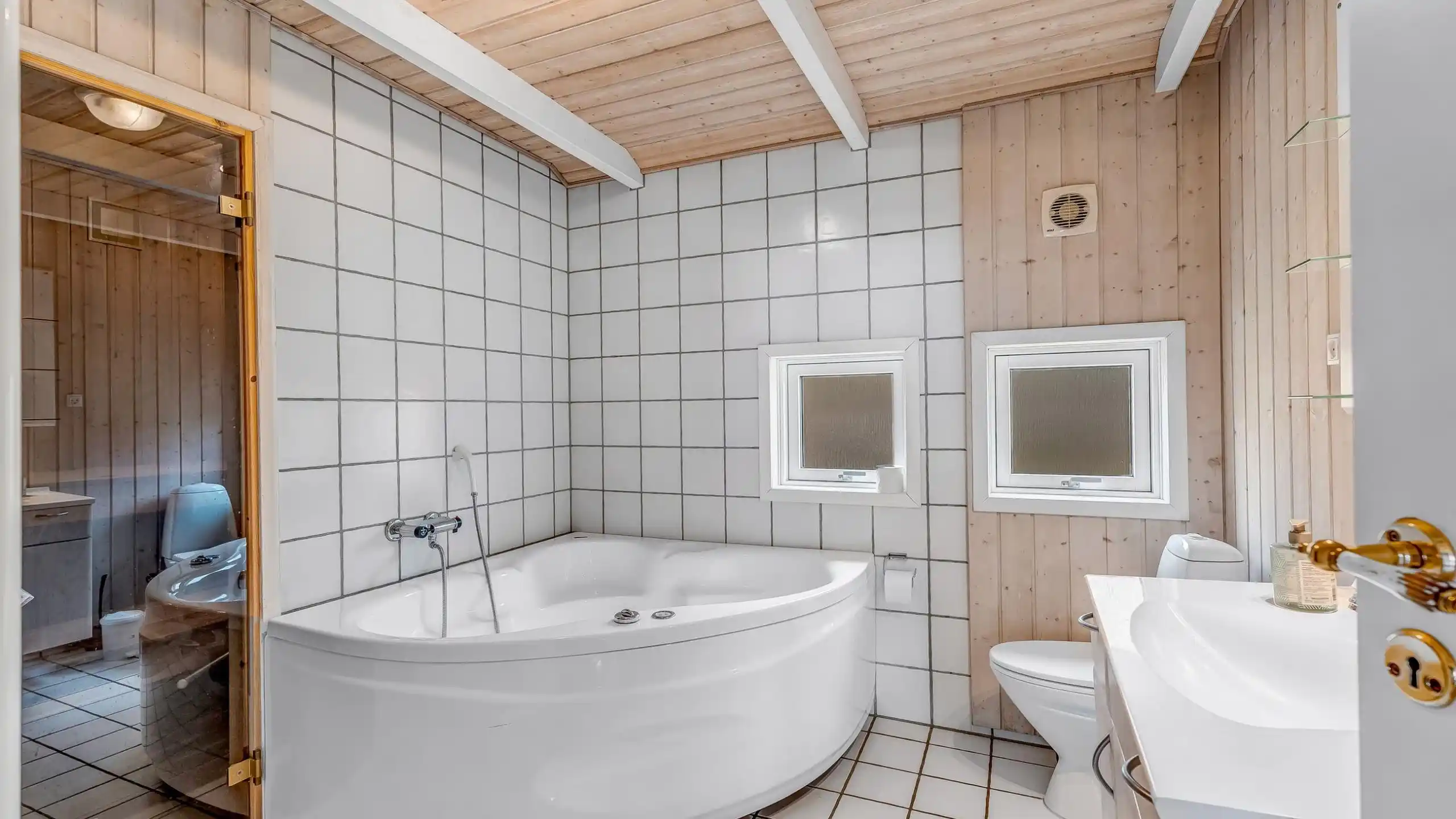 Stort og funktionelt sommerhus på 88 m² med plads til op til 9 personer. Huset rummer tre soveværelser og to badeværelser – det ene med både sauna og spabad. Her er god mulighed for at nyde ferien sammen, både ude og inde.