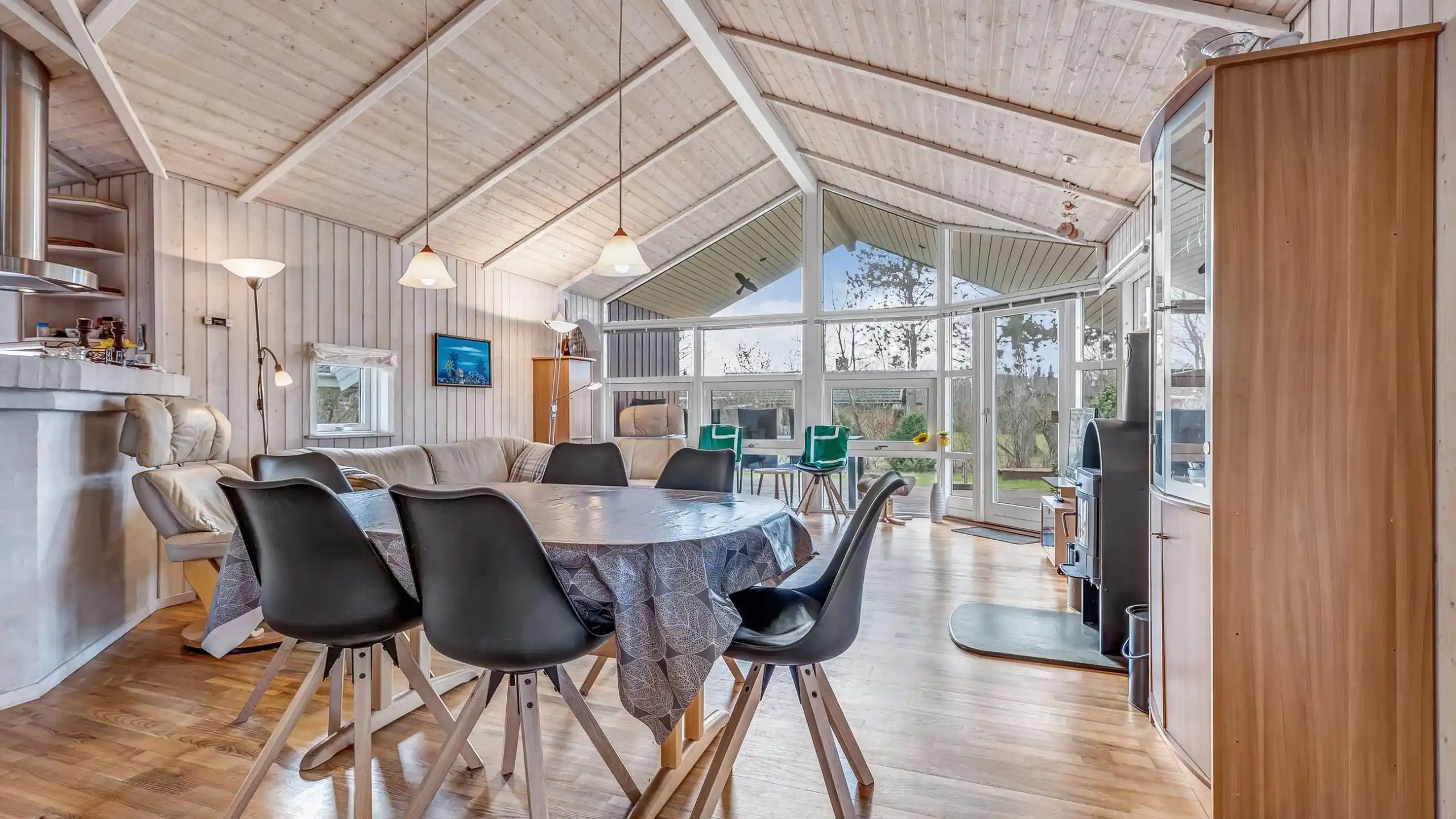 Huset har en stor, åben opholdsstue med køkken og spiseplads i forlængelse af hinanden – ideelt til socialt samvær. Fra stuen er der direkte adgang til terrasse og have.