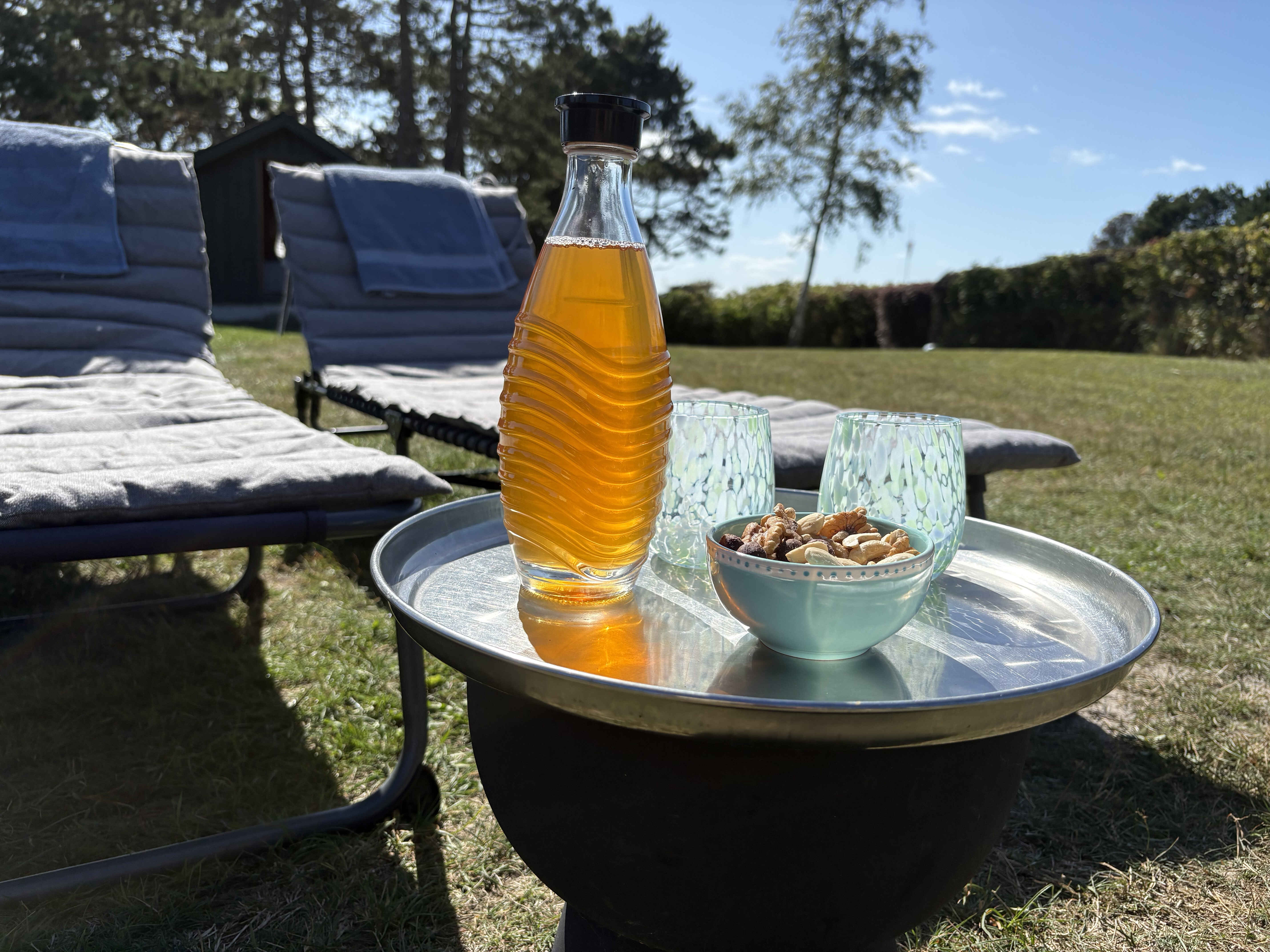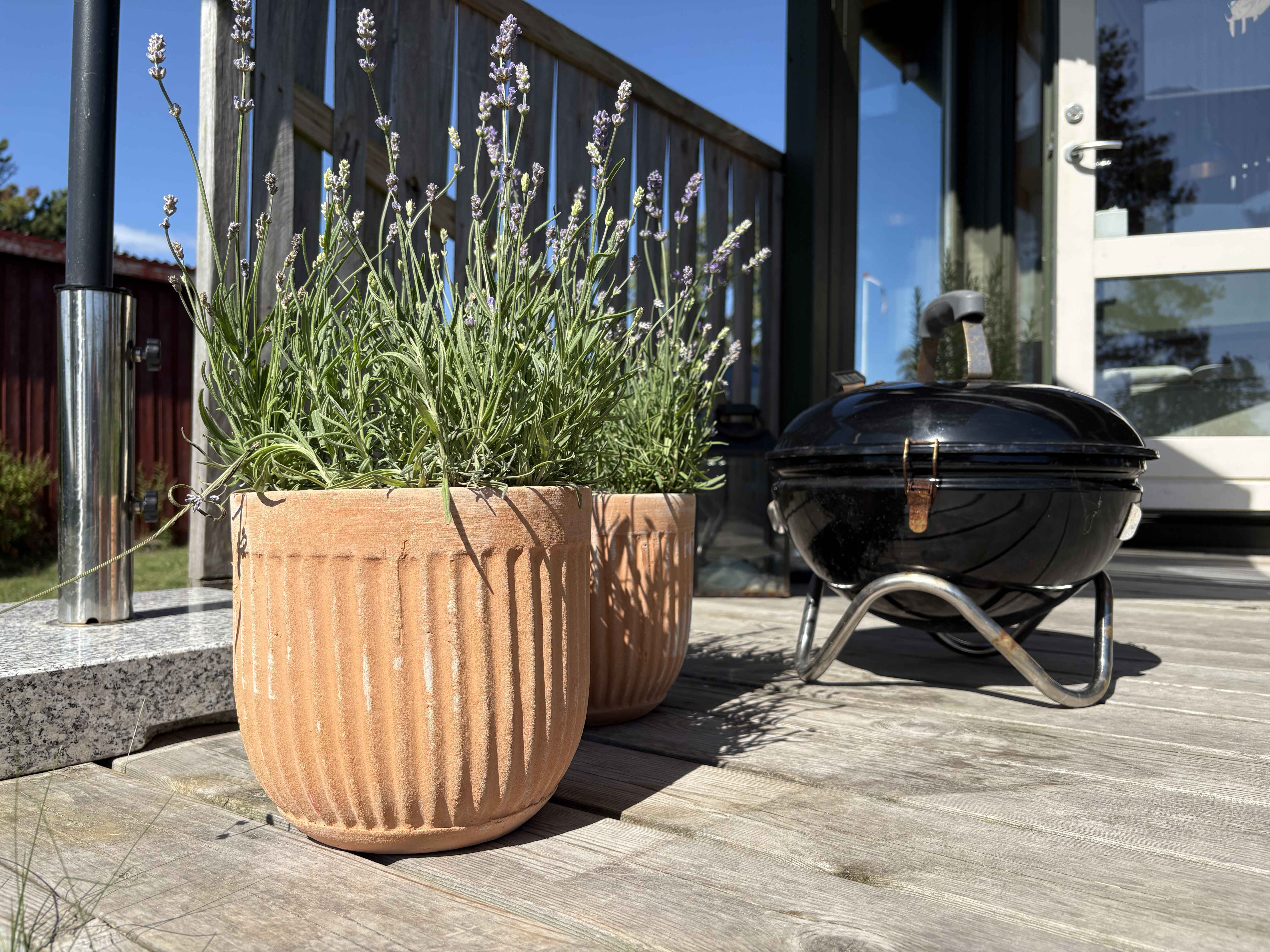 Grunden er rummelig og giver plads til leg, boldspil og ophold i det fri. Her er let adgang til både sol og skygge, og uderummet kan nemt blive familiens naturlige samlingspunkt.