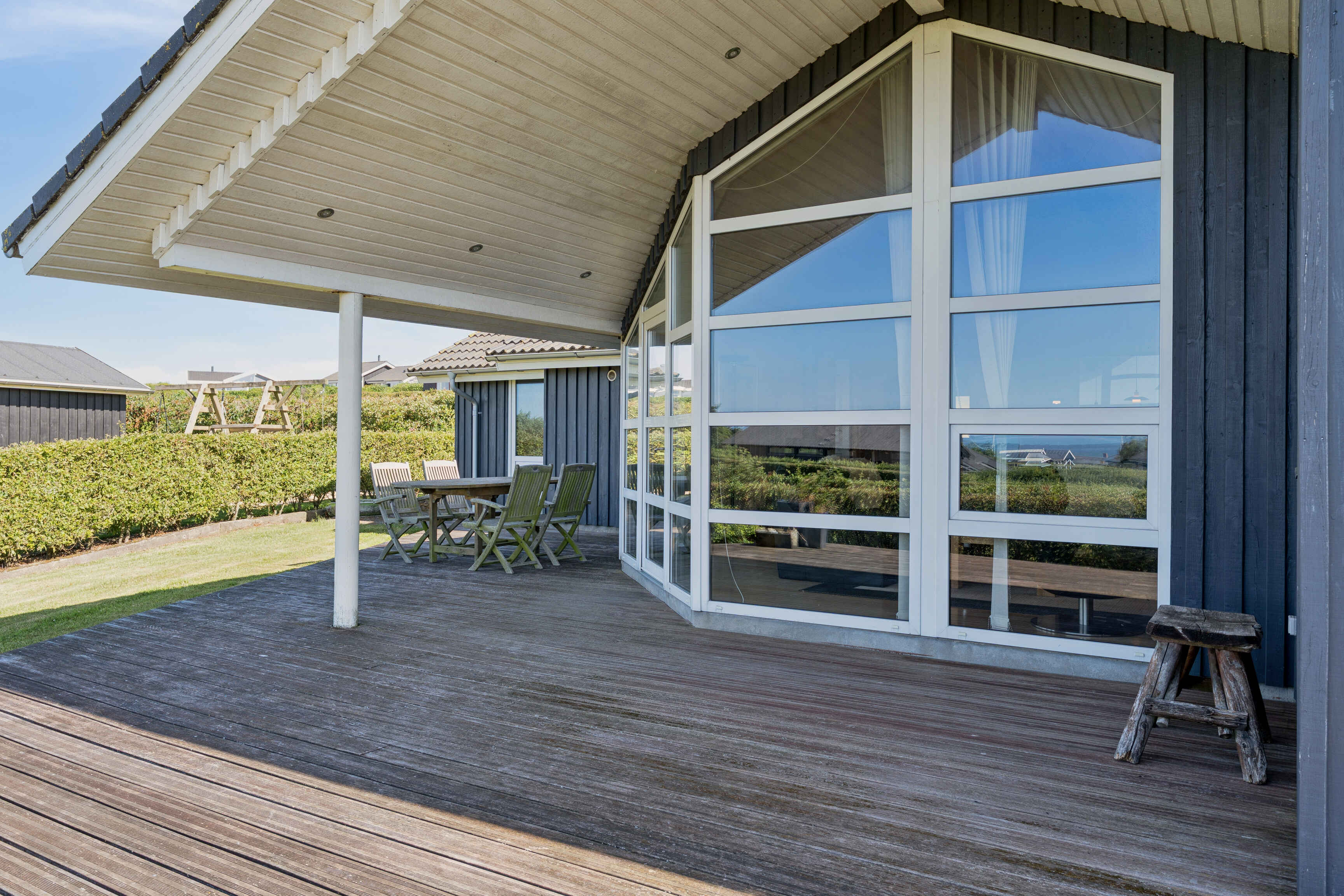 Som nabo ligger en campingplads, hvor husets gæster kan benytte de tilhørende aktiviteter uden ekstra omkostning. Det giver ekstra muligheder for leg og fælles oplevelser tæt på boligen.
