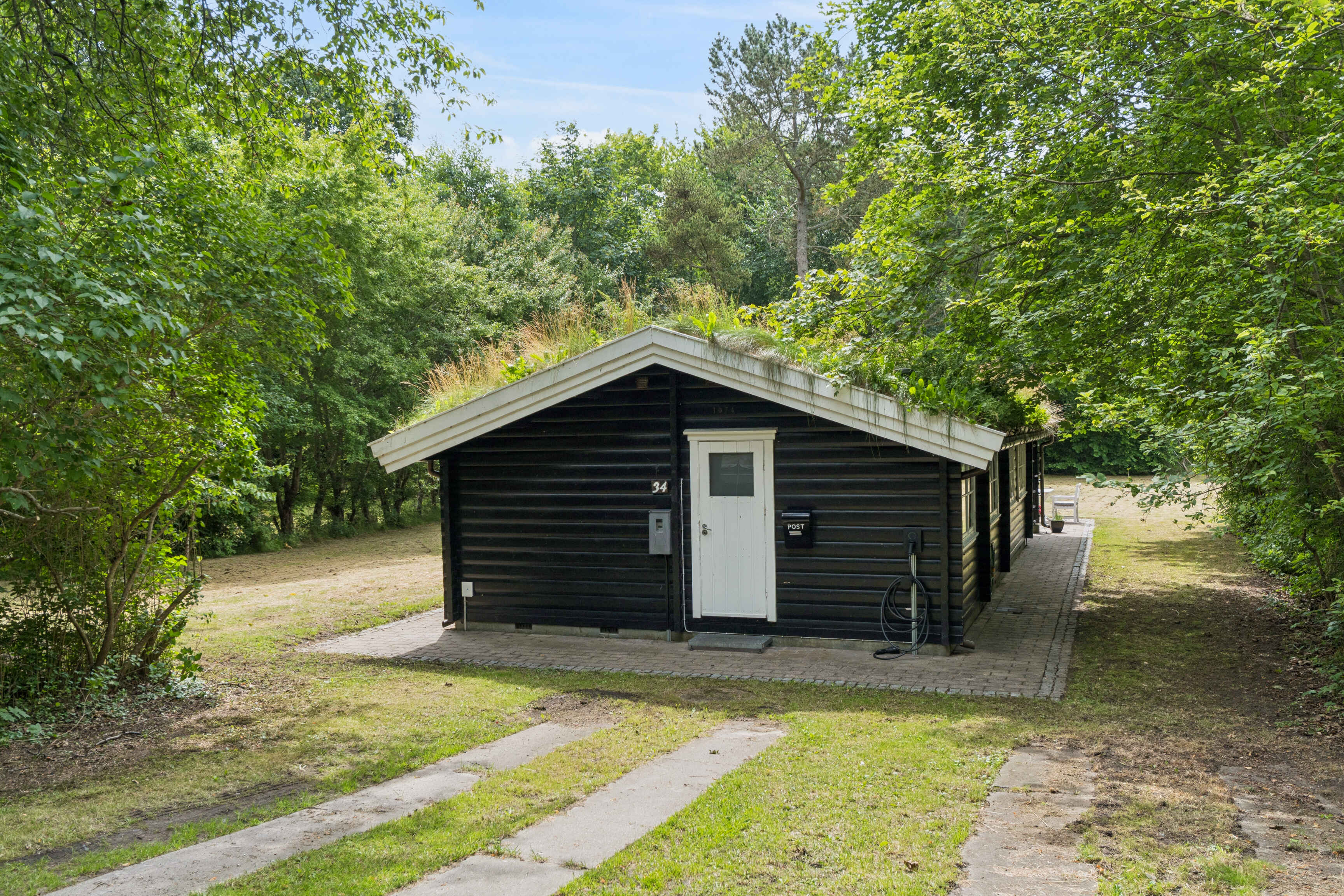 Dette sommerhus er et charmerende sort bjælketræhus med hvide vinduer, beliggende på en rolig grund med direkte udsigt til naturskov. Huset er 69 m² og indrettet med omtanke, så du kan nyde ferien i afslappede og hjemlige rammer – året rundt.