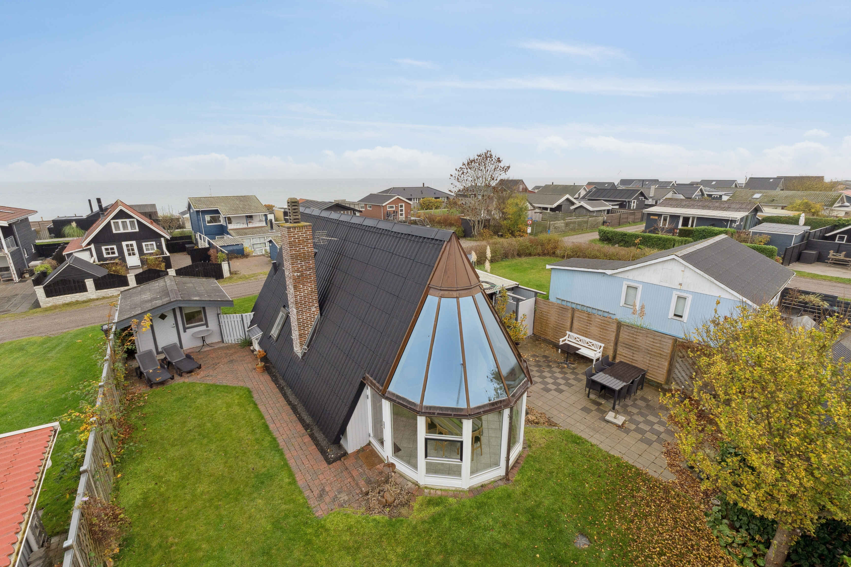 Haven giver god plads til udeliv. Her kan man spise, lege eller blot nyde roen og lyden af havet, der ligger kun 100 meter væk. Om aftenen er det oplagt at tænde op i grillen og se dagen gå på hæld.