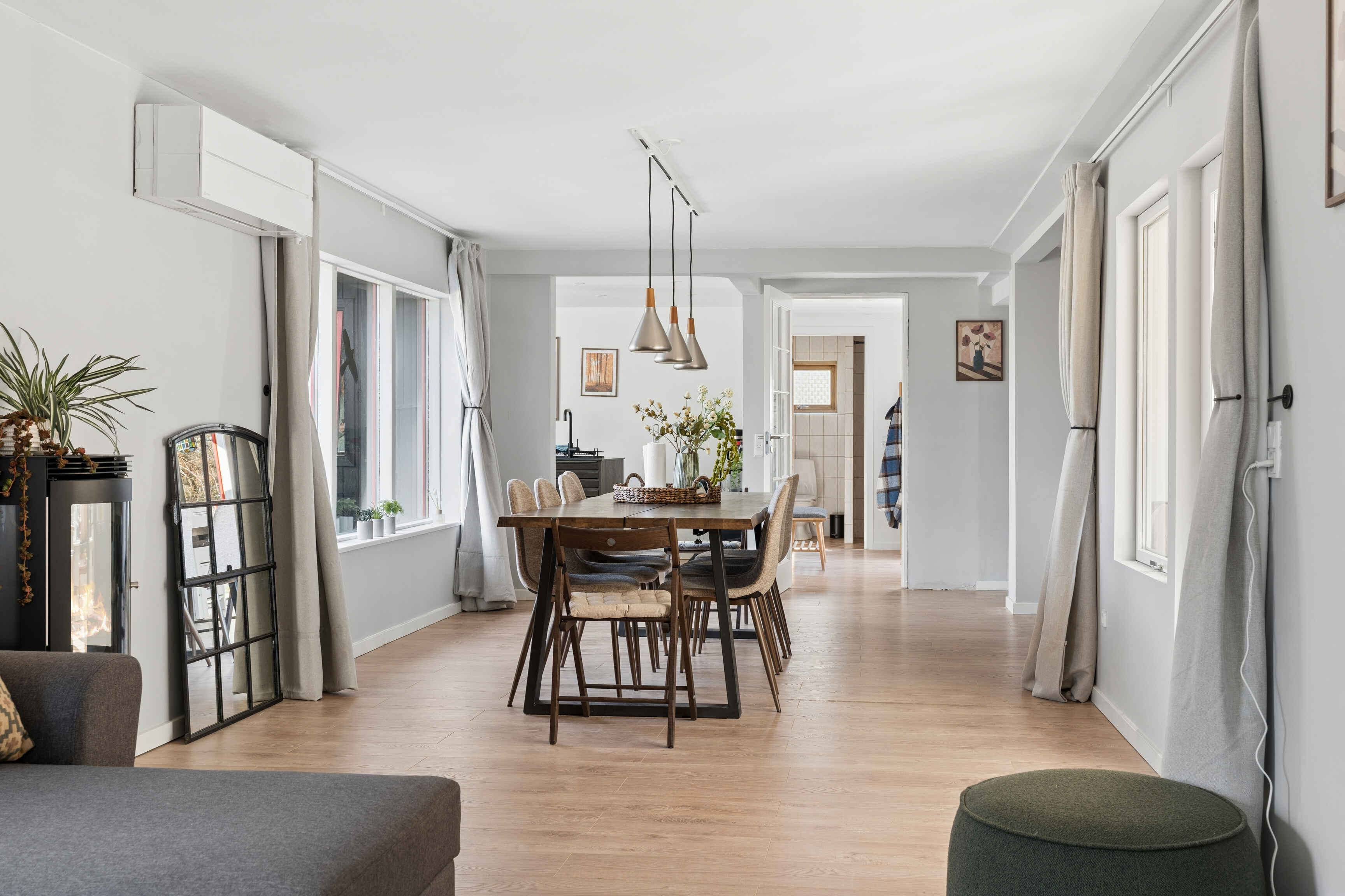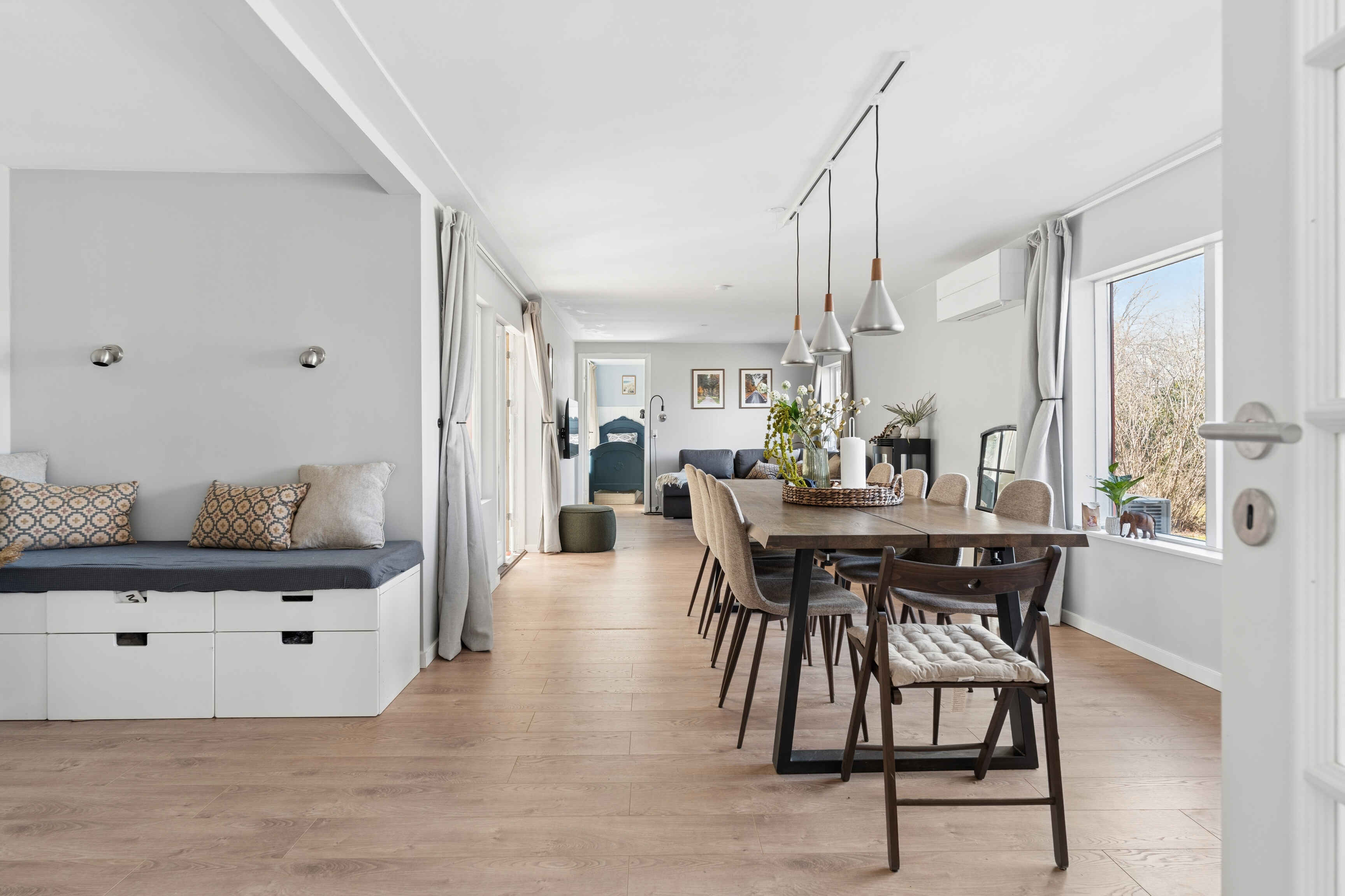 Huset byder på Indbydende entré og praktisk bryggers med vaskemaskine, tørretumbler og direkte adgang til haven. To moderne badeværelser med brus og smarte opbevaringsløsninger. Fire rummelige soveværelser (3 dobbeltsenge 1 med to enkeltsenge), alle med god opbevaring. Stort åbent køkkenalrum i forbindelse med den lyse stue, hvor du finder en stor U-formet sovesofa med ekstra sidde- og soveplads samt spisebord til 10 personer, med mulighed for udvidelse. Hyggelig havestue med direkte adgang til terrasse og have. Huset har gulvvarme og aircondition med både køle- og varmefunktion.
