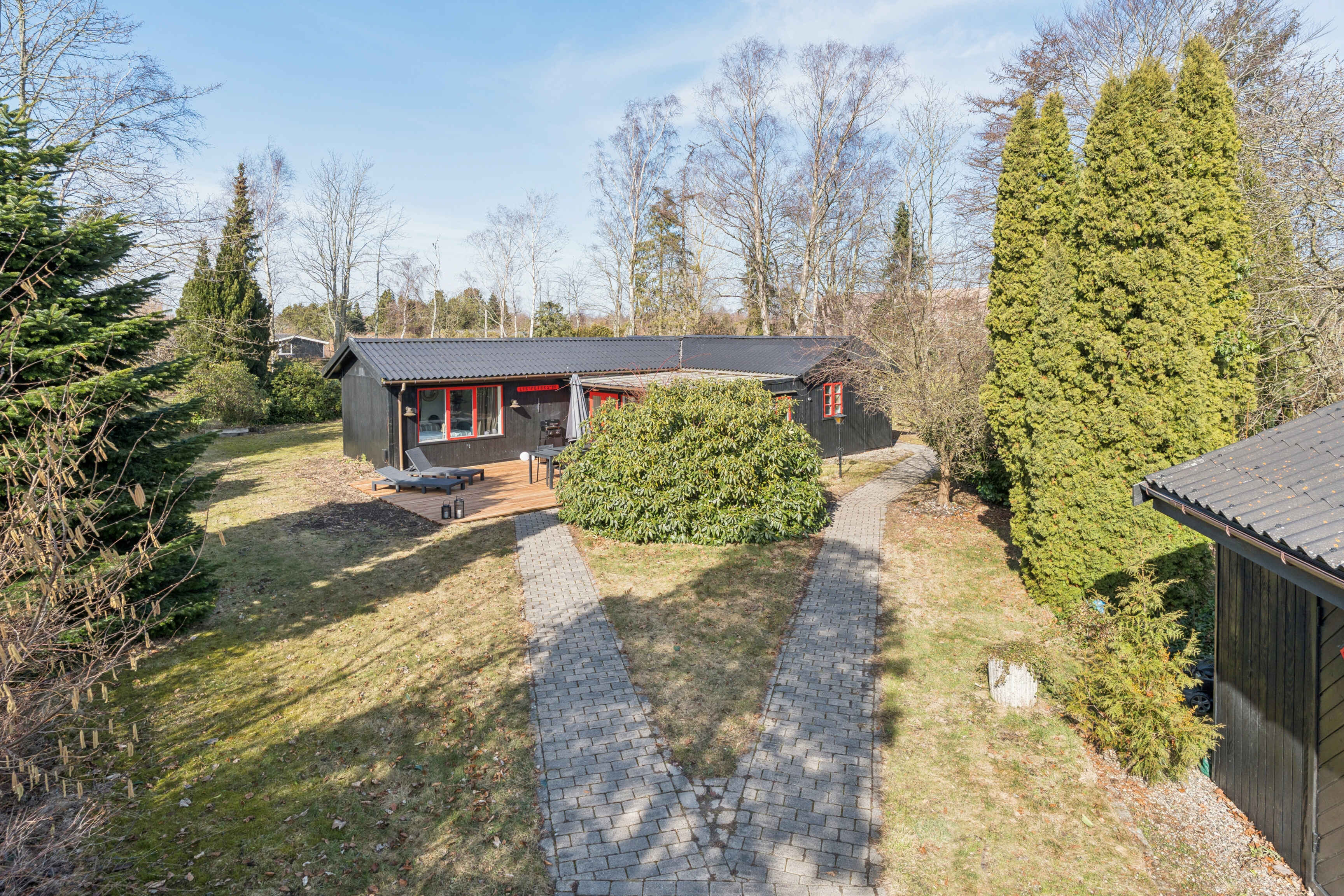 Idyllisk skandinavisk sommerhus til 10 personer, beliggende på en stor, solrig grund på 2.030 m² med masser af plads til leg, afslapning og udendørs aktiviteter.