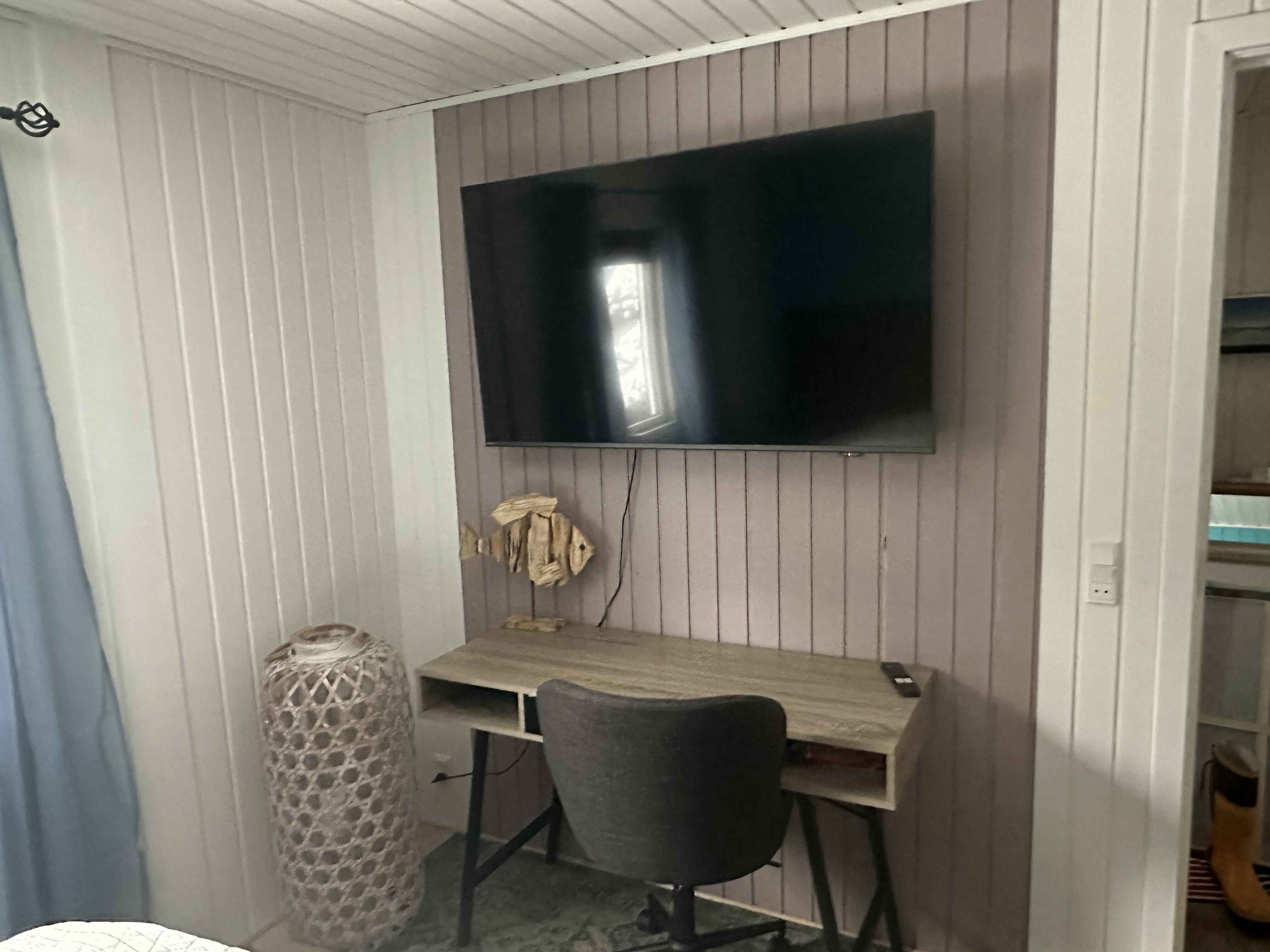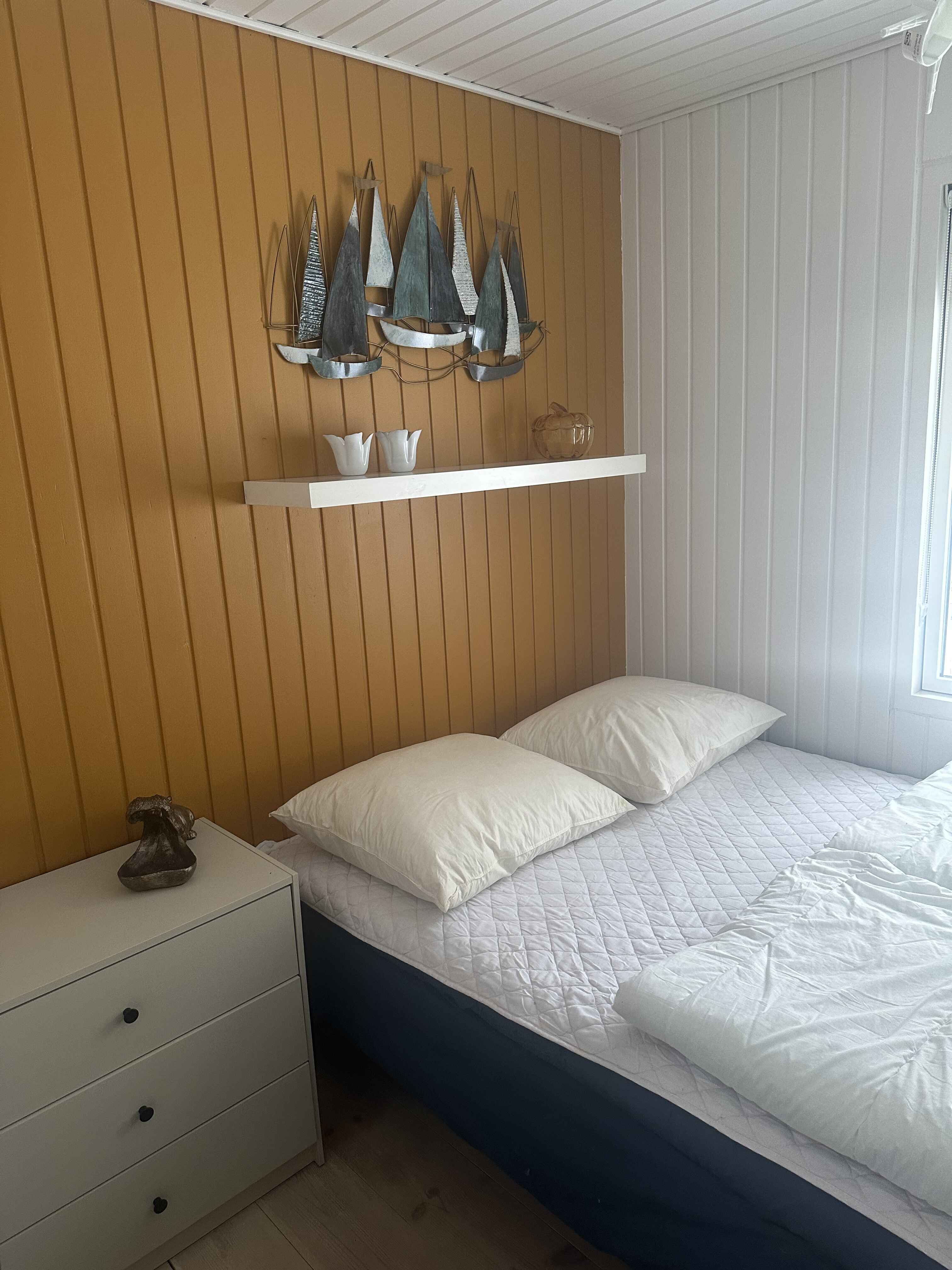 Inden døre er der lyst og indbydende, og man kan tydeligt mærke, at der er lagt vægt på at gøre rummene hyggelige og stemningsfulde. Det gælder de fire soveværelser, der alle er udstyret med dobbeltseng. 2 af soveværelserne er udstyret med TV med Chromecast. Stue og køkken ligger i åben forbindelse. Her er der brændeovn og varme pumpe til eventuelle kølige dage og aftener, og hvis I er i humør til en god film eller lidt let underholdning, står der et TV med Chromecast placeret ved sofa afdelingen. Kort sagt meget behagelige rammer, ferie livet kommer til at udspille sig i.