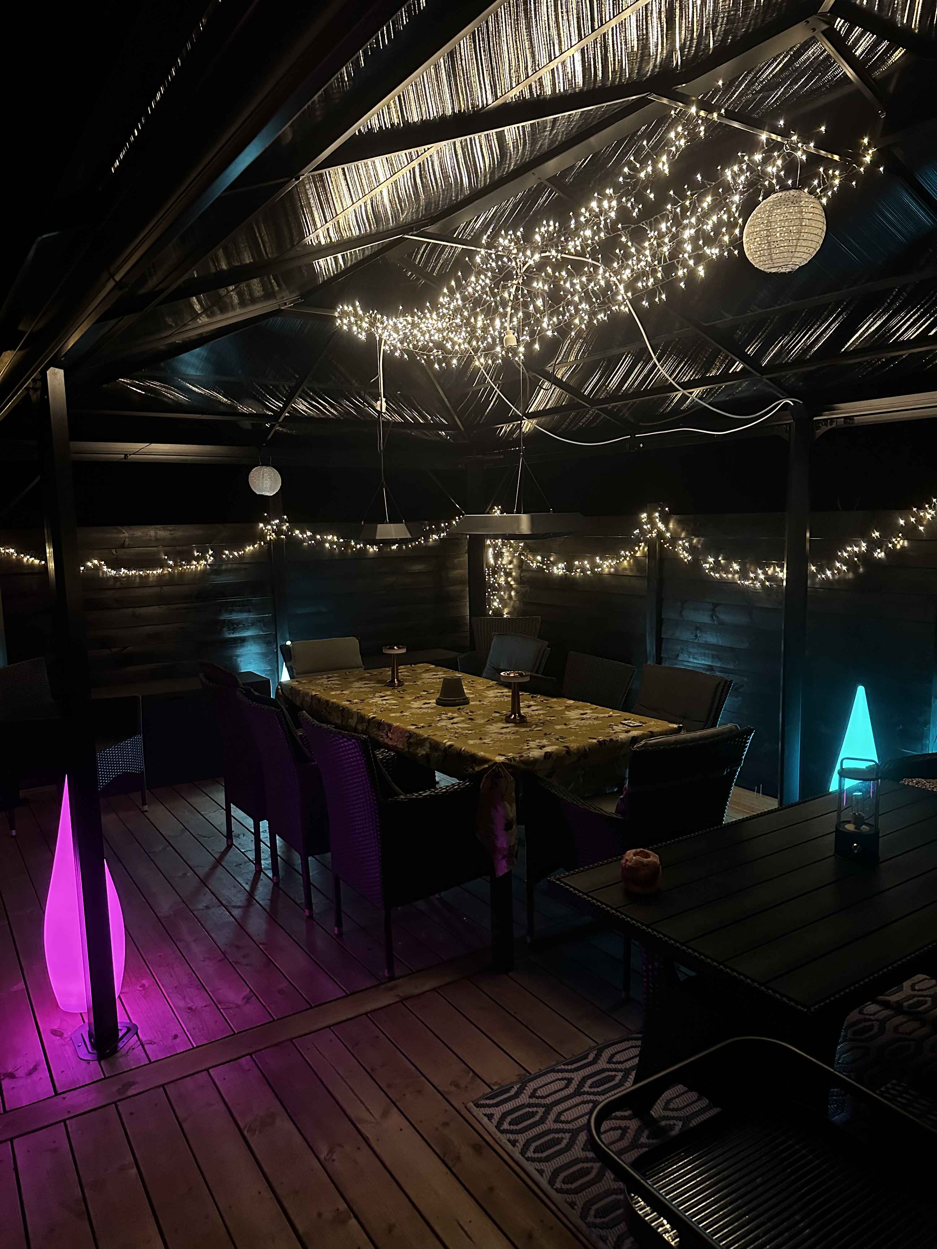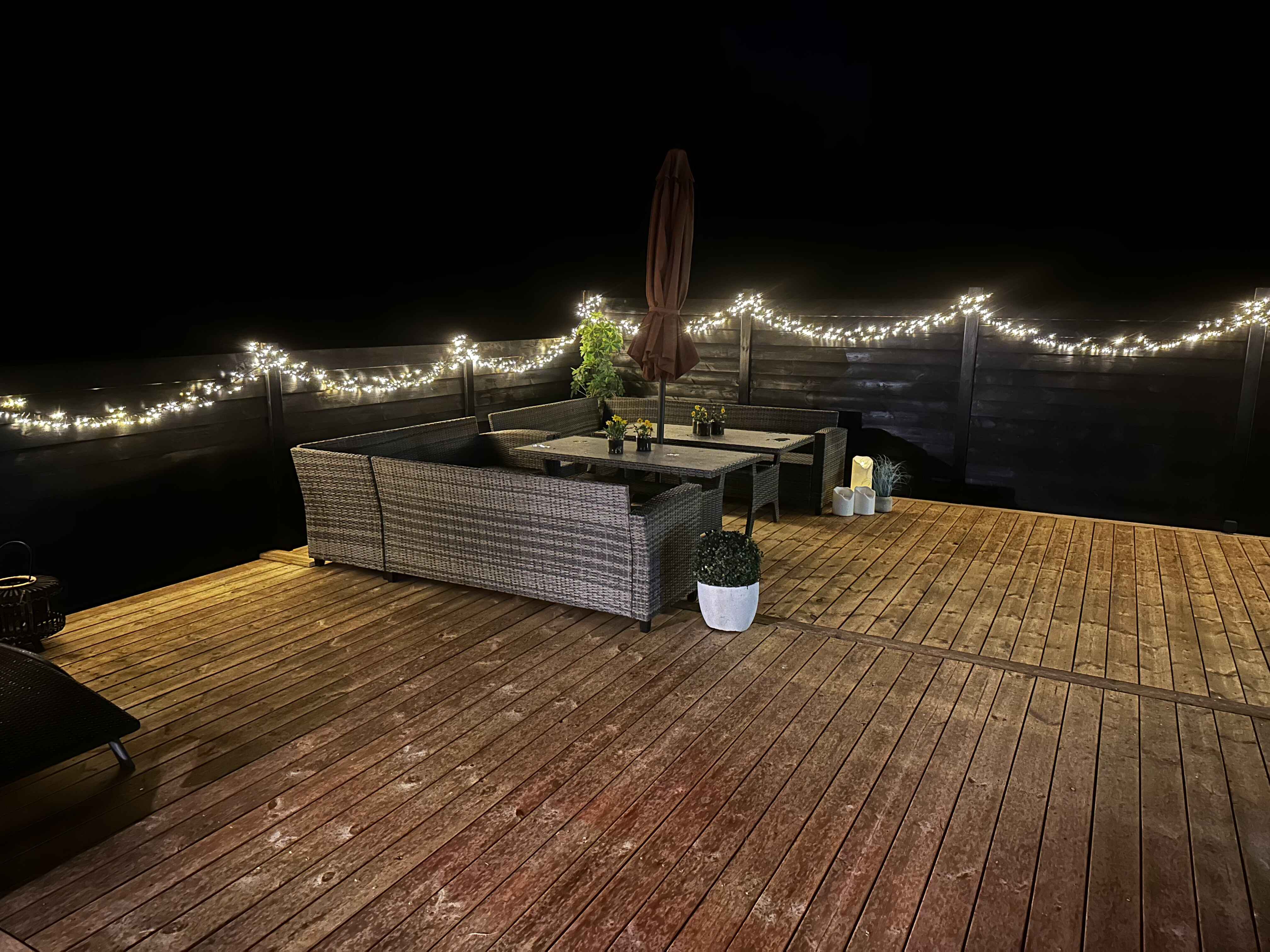 Ude på den 1.493 m2 store grund naturgrund er der også godt at være – ikke mindst på terrassen, der smyger sig om to sider af sommerhuset. Mod øst er der havkig fra terrassen og mod syd er den er skærmet af et hegn så man kan færdes ugeneret på terrassen. Liggestole, havemøbler og en grill står til rådighed, så I ikke skal mangle noget. Herudover er mulighed for at riste skumfiduser ved bålpladsen. I garagen forefindes forskellige aktiviteter som I kan hygge Jer med.