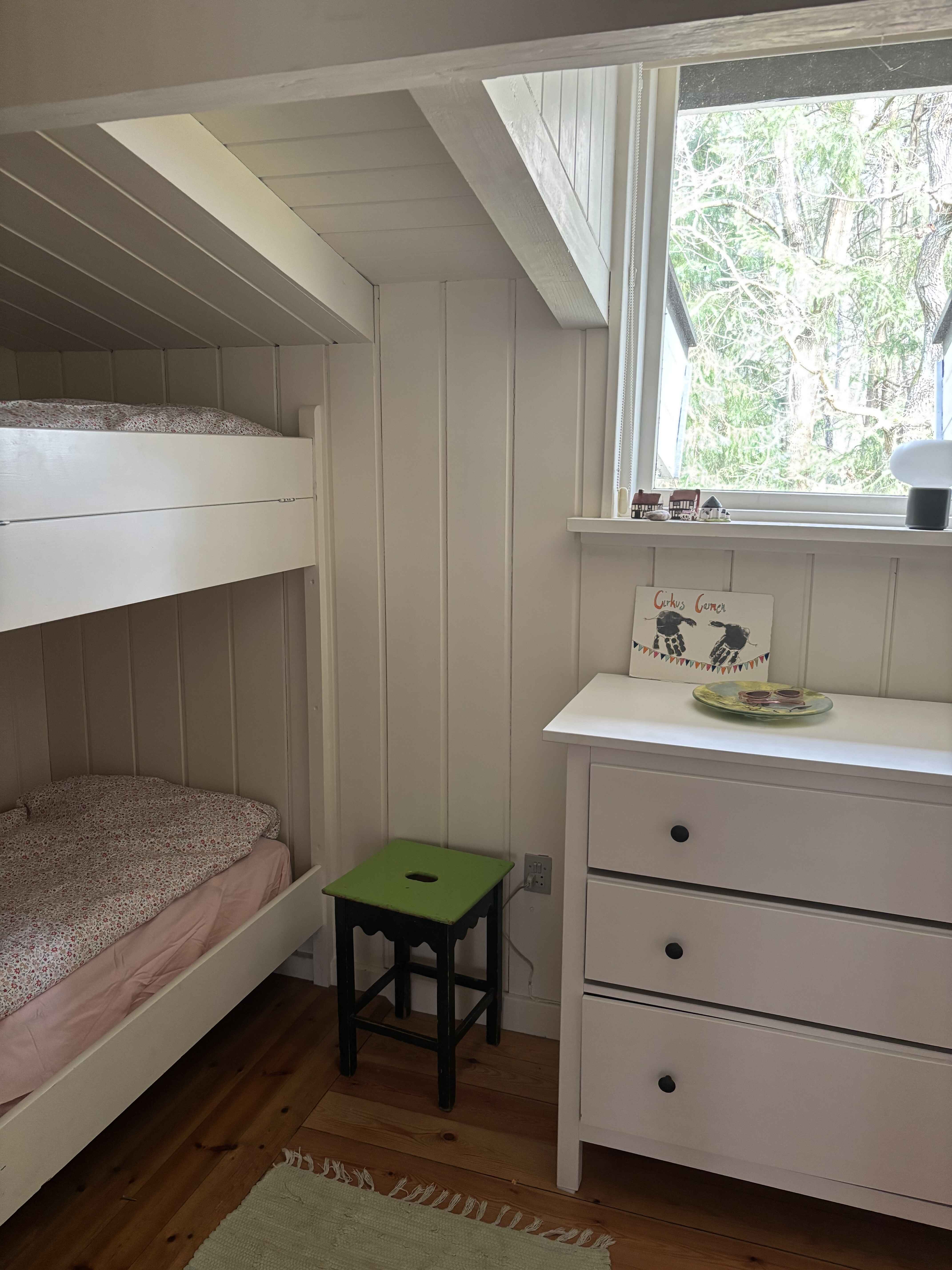 Dette idylliske sommerhus på 76 m² er en original træhytte, skabt til ro og nærvær. Her får I en feriebolig, hvor tempoet sænkes, og hvor naturen er en naturlig del af opholdet – både inde og ude.