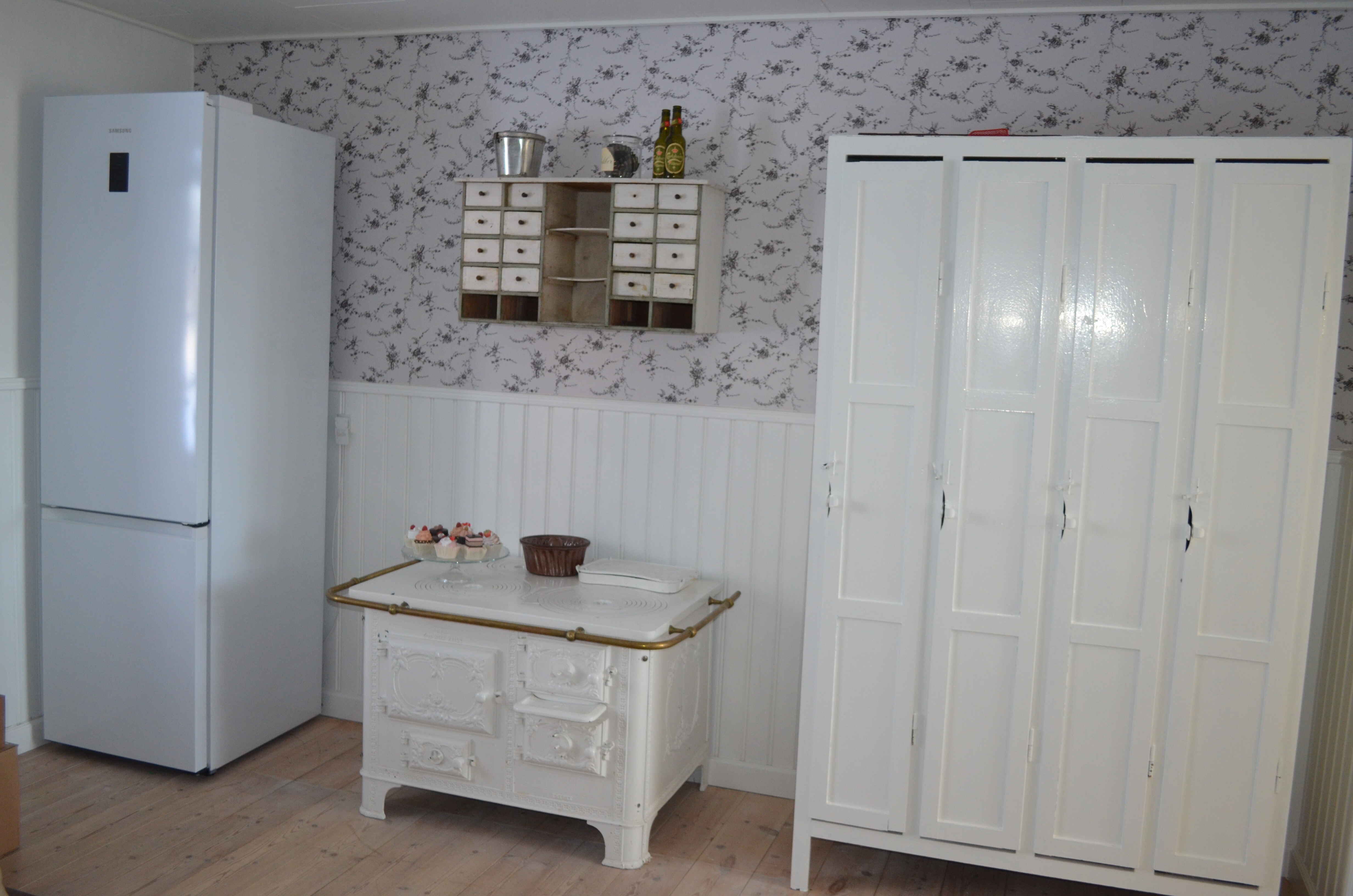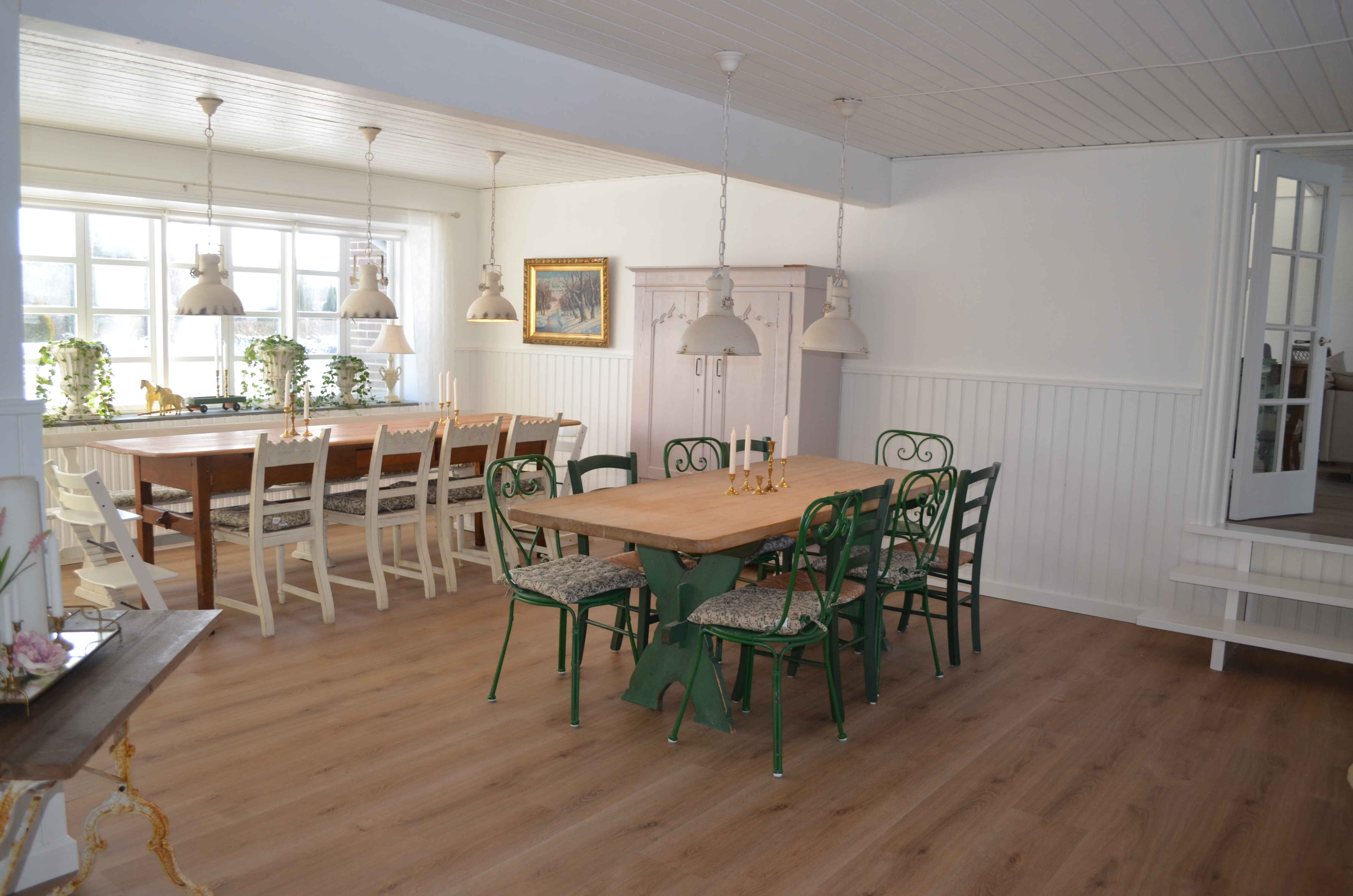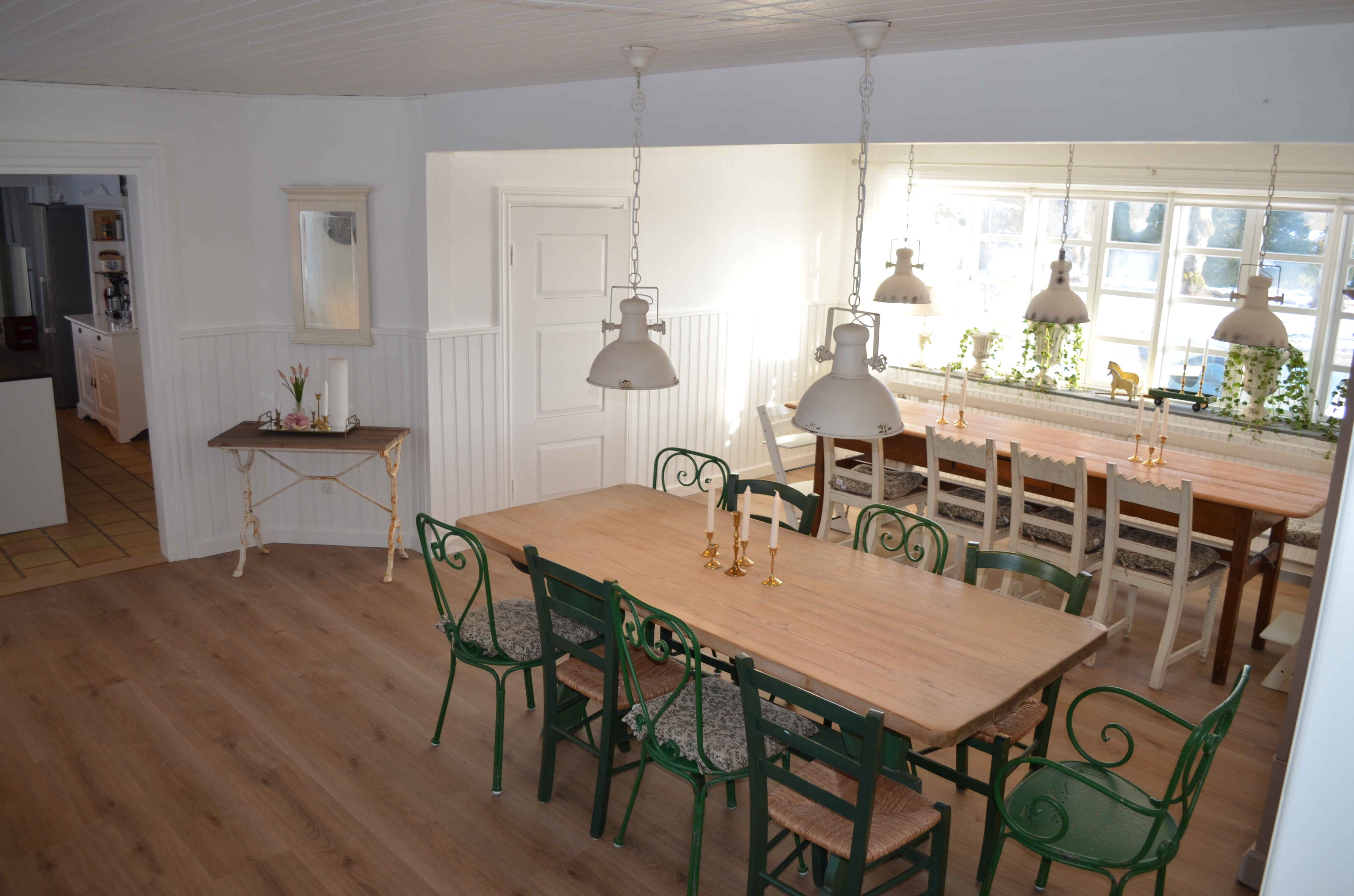 Køkkenet er rummeligt og funktionelt med et praktisk grovkøkken ved siden af. Det gør madlavning og oprydning let – også når mange er samlet. Fællesmåltider bliver et naturligt samlingspunkt i huset.