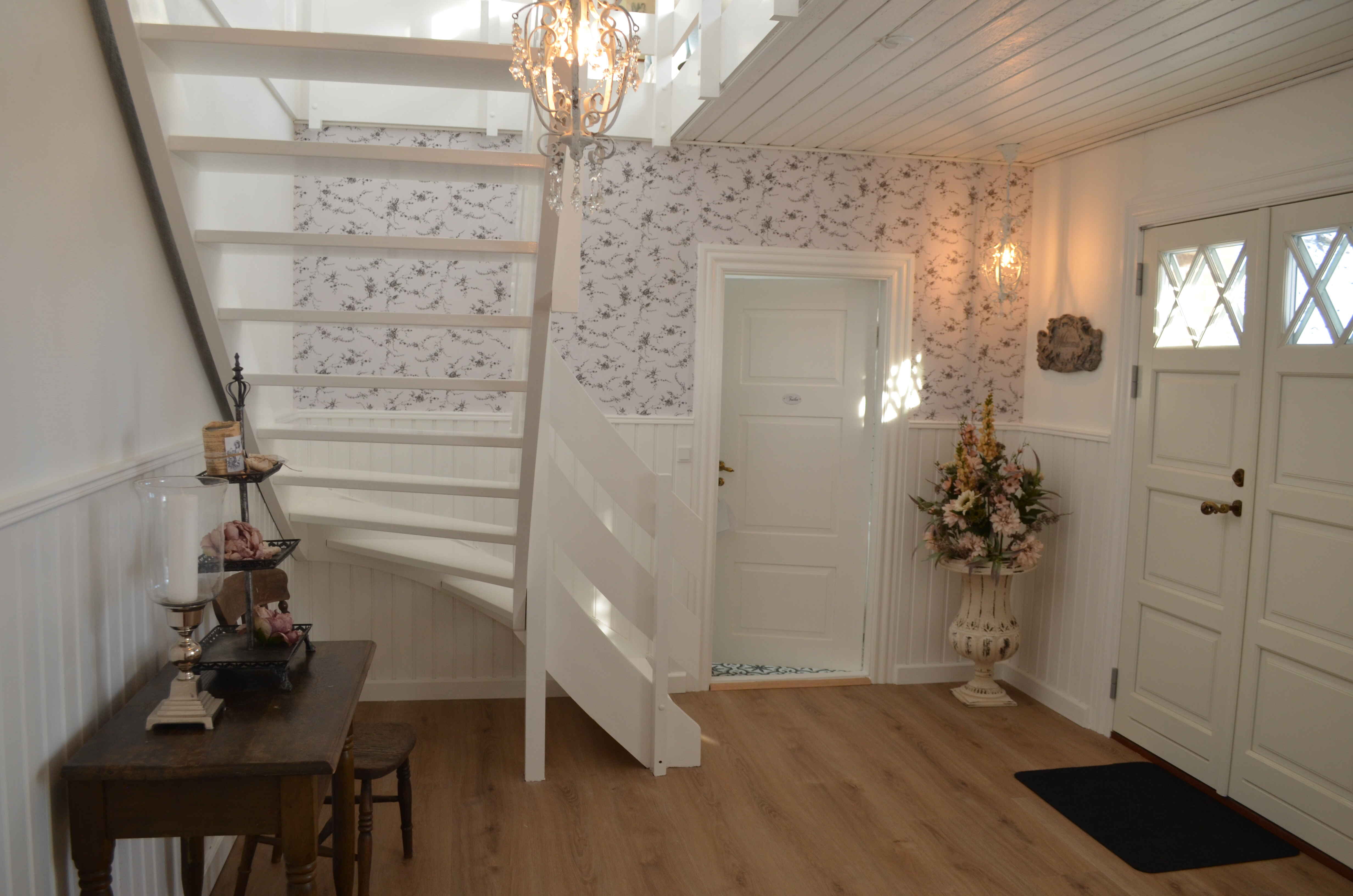 Huset er i to plan med ét soveværelse i stueplan og de resterende på førstesalen. Det giver en god fordeling mellem fællesarealer og private zoner. Varmepumpe sikrer behageligt indeklima året rundt.