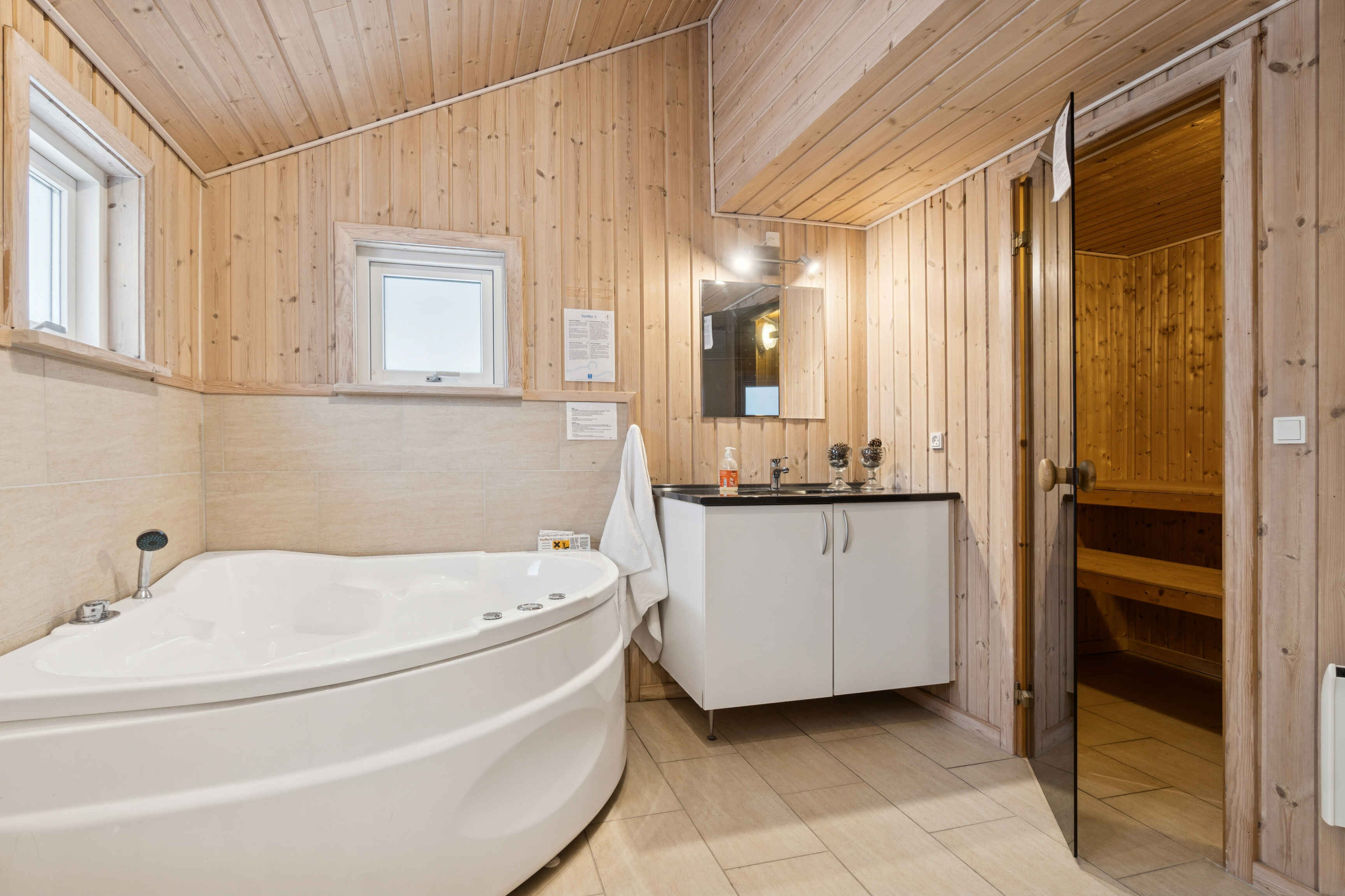 Huset rummer tre pæne soveværelser samt en rummelig hems, hvilket gør det velegnet til to familier eller flere generationer. Badeværelset er flot indrettet med både spabad og sauna til afslapning efter dagens oplevelser.
