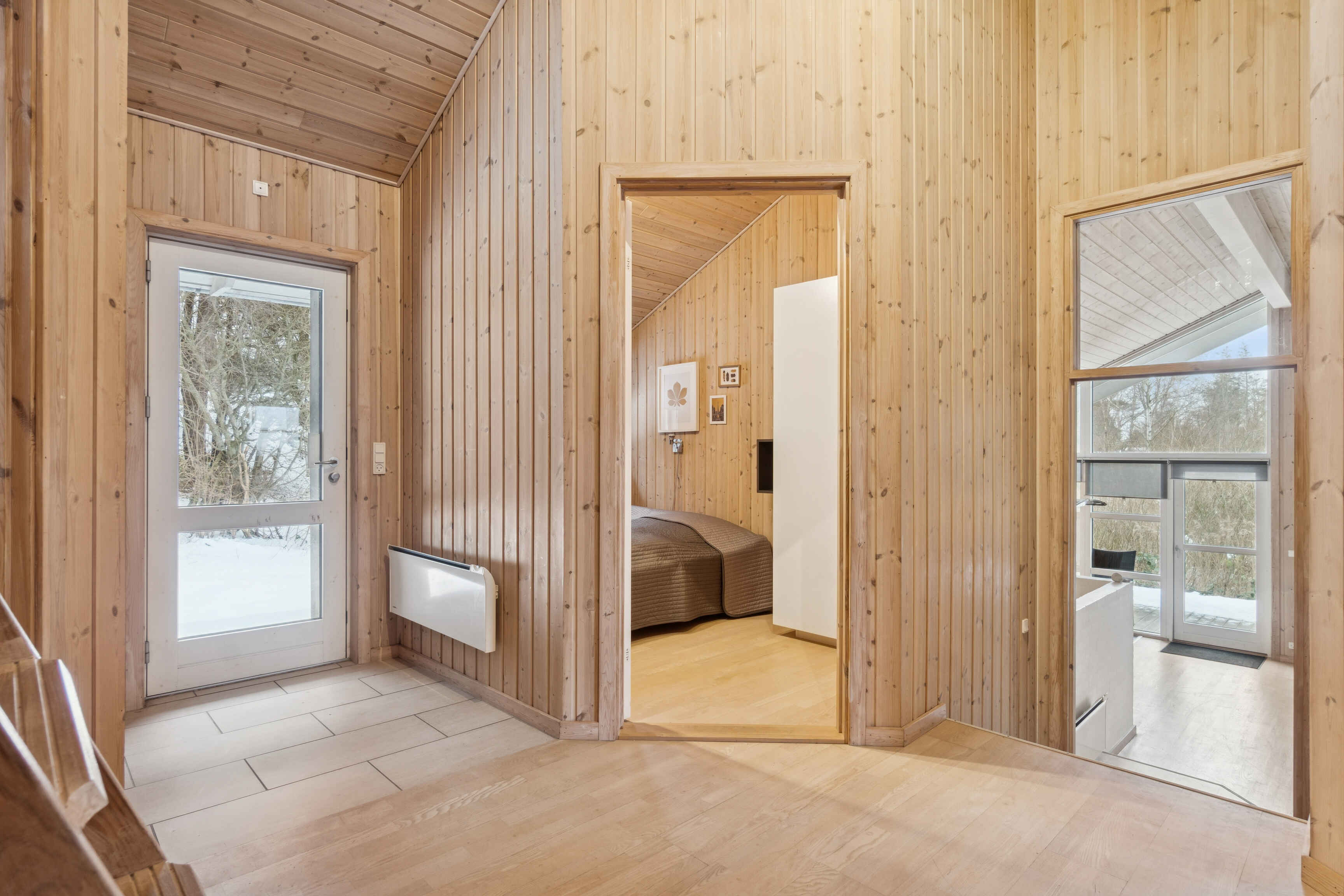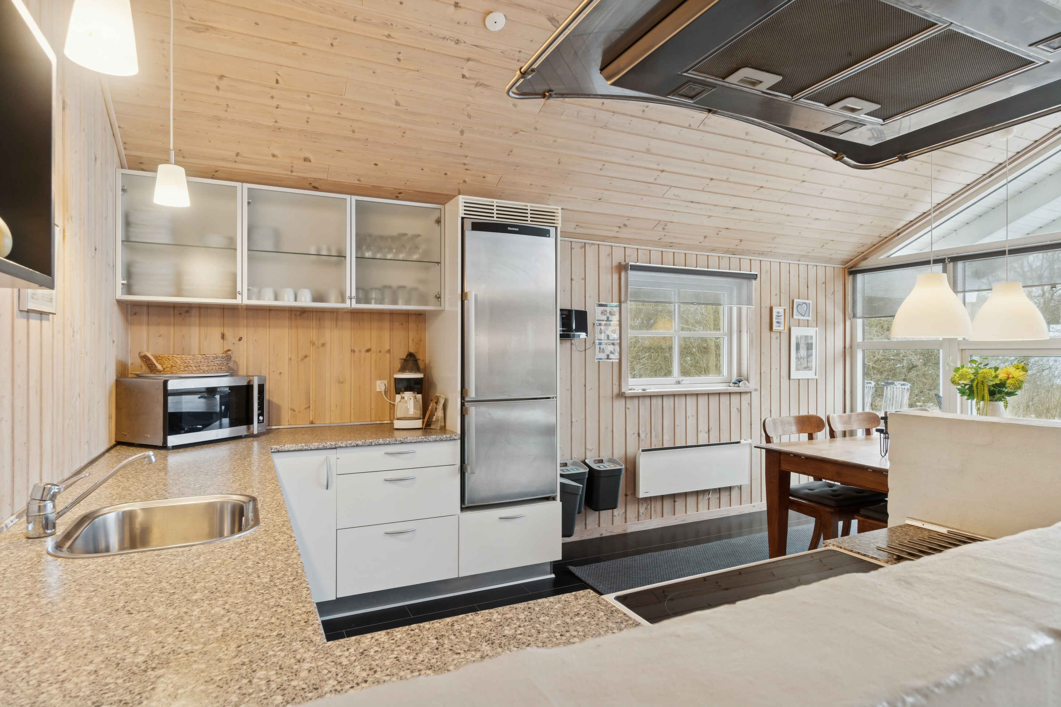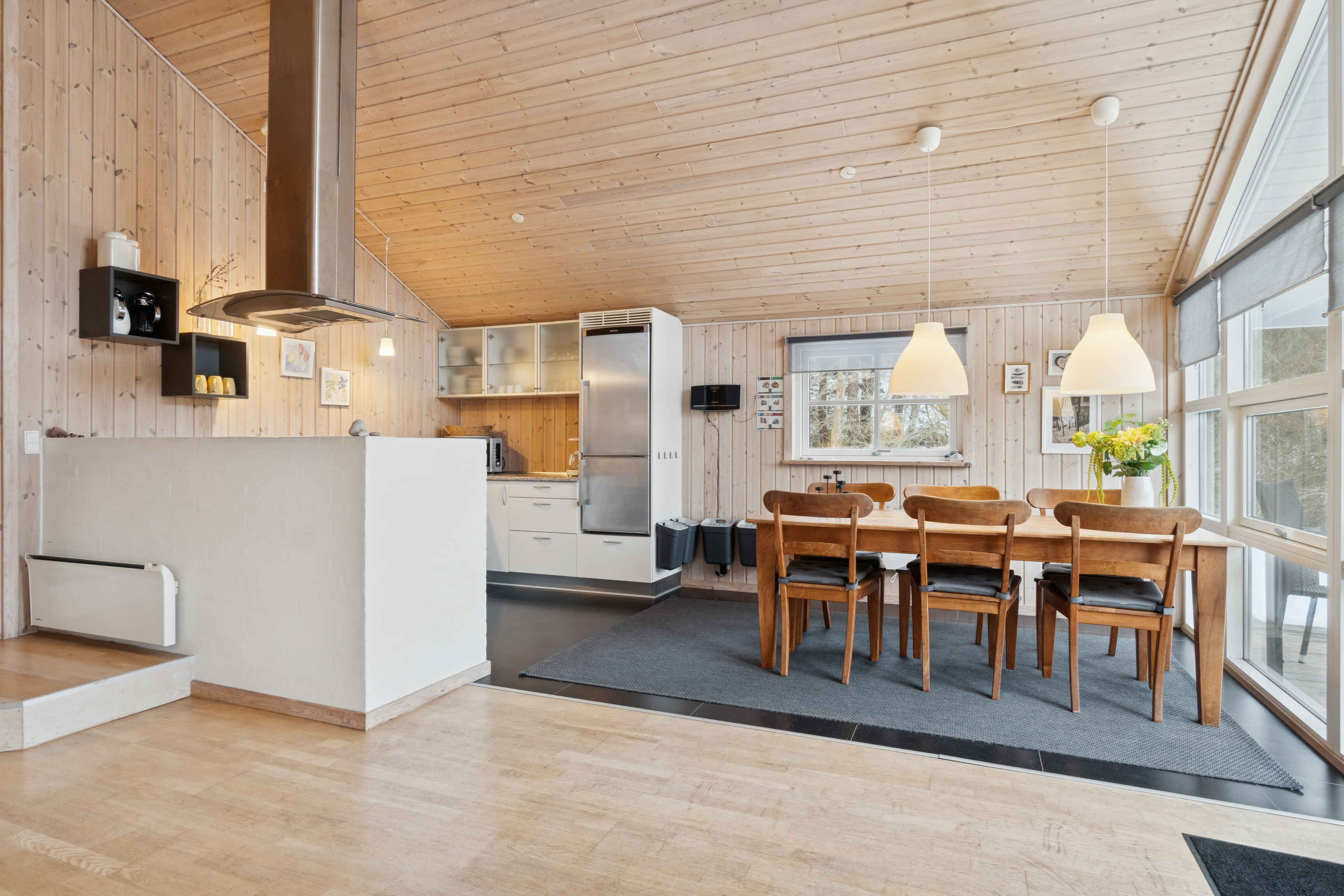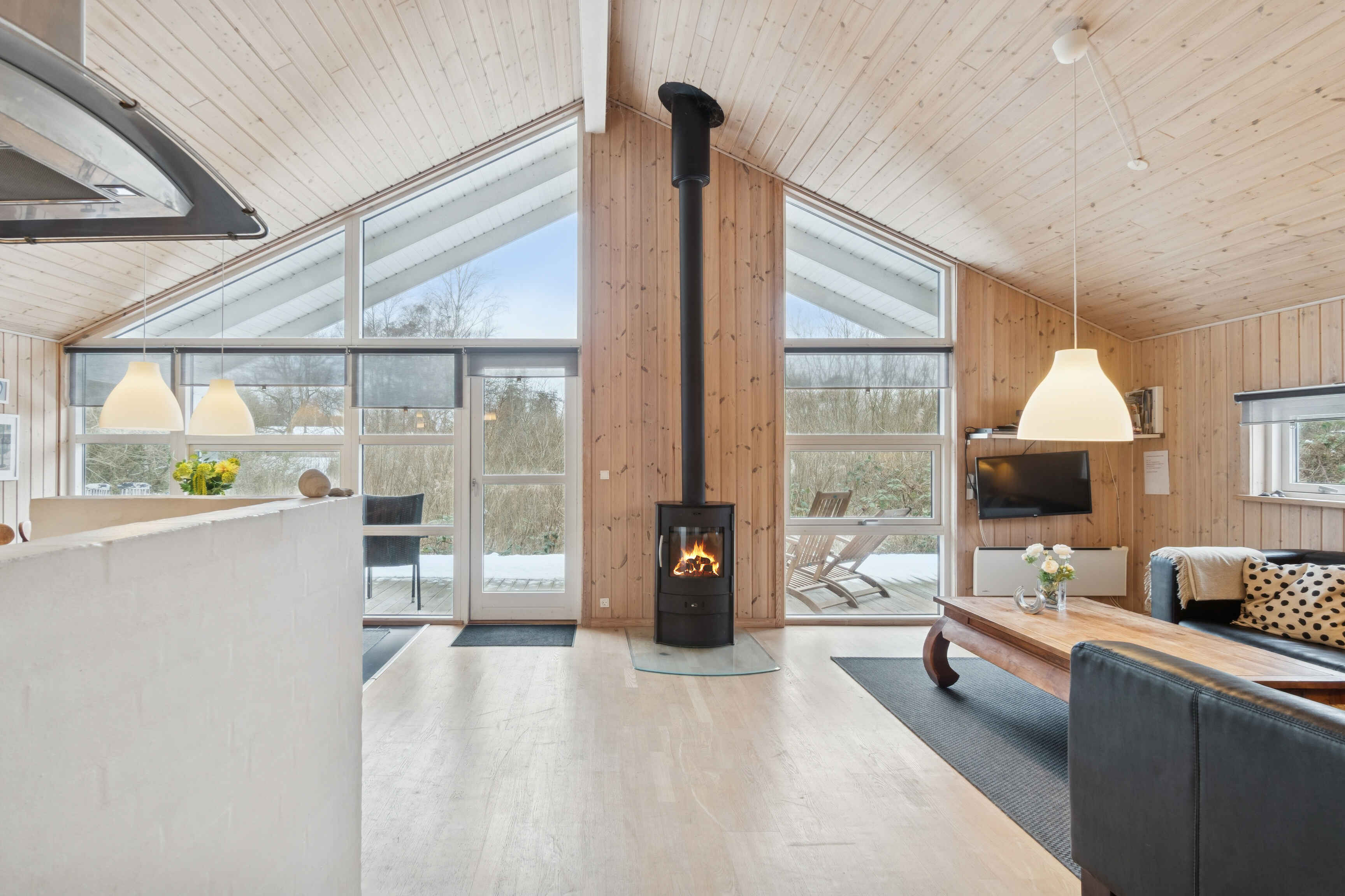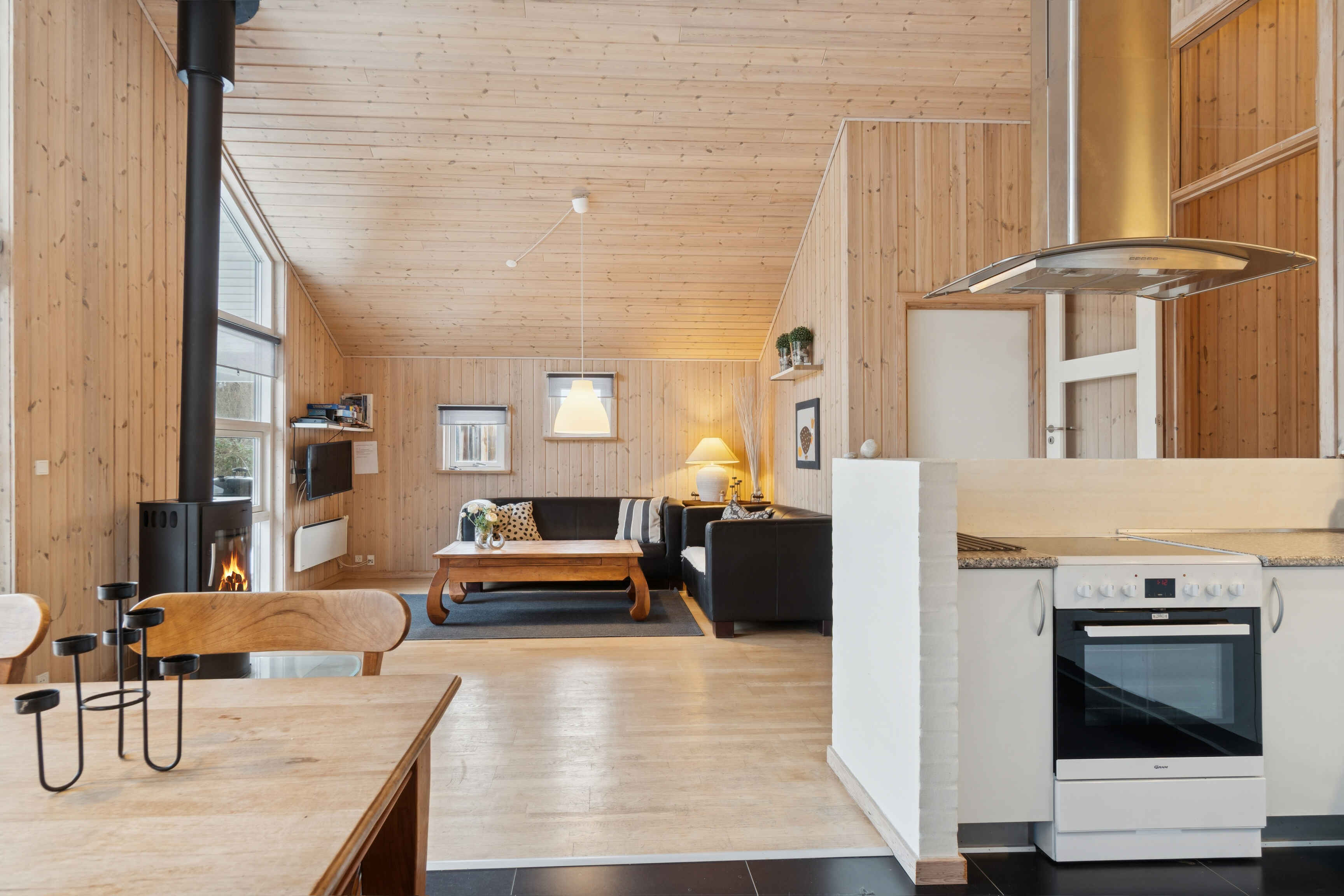 Dette moderne feriehus på 100 m² byder på en stemningsfuld ramme for ferien. Huset er bygget i forskudte plan, hvilket skaber en god rumfornemmelse og en naturlig base for ophold og hvile.