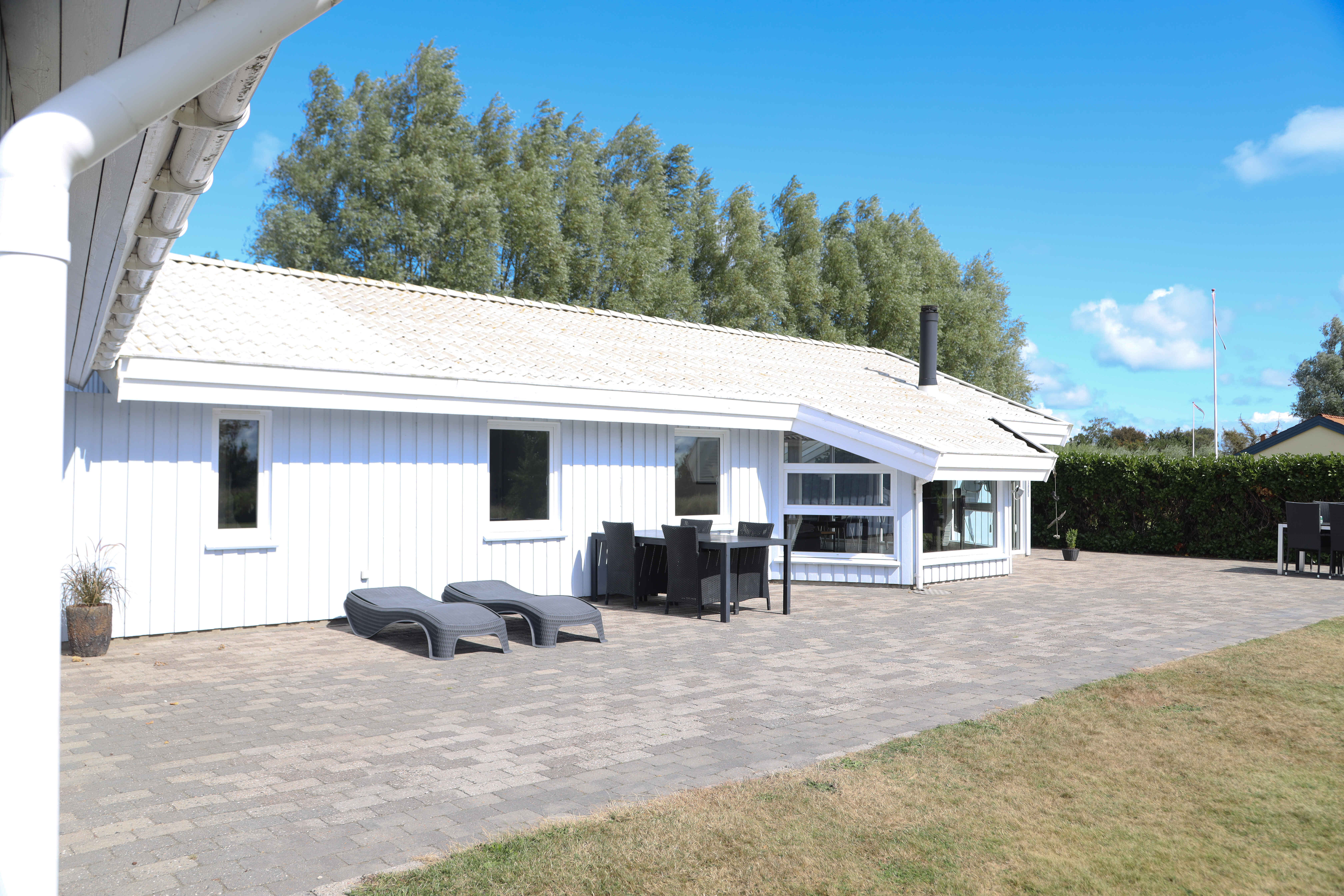 Udendørs kan I nyde den store terrasse og de rolige omgivelser. Stranden ligger kun en kort gåtur væk, og området er ideelt til afslapning, badeture og lange gåture langs kysten.