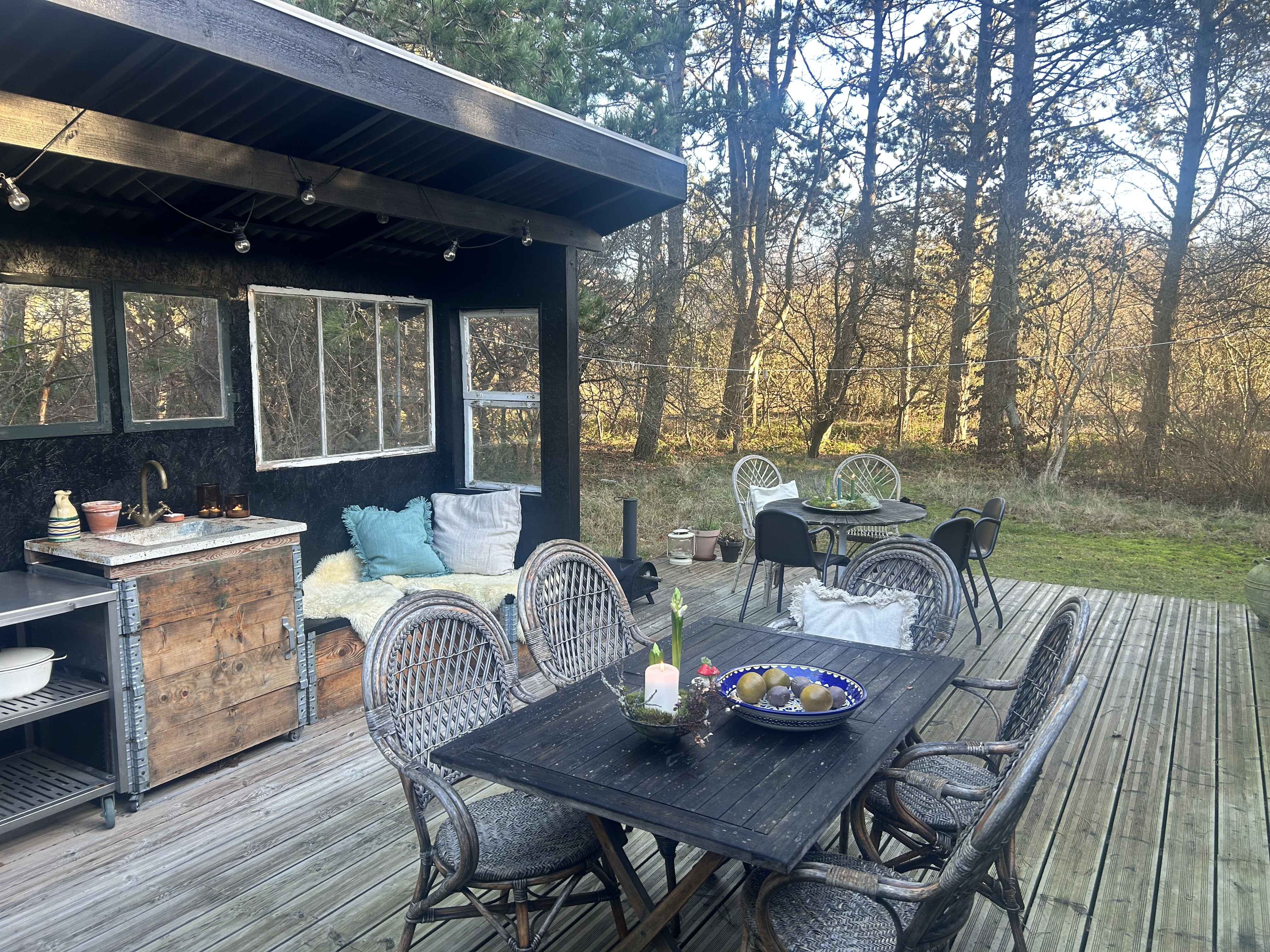Udearealerne er et stort aktiv. Haven byder på både sol- og skyggefulde opholdssteder samt bålplads, trampolin og cykler, som indbyder til leg, afslapning og aktive feriedage i det fri.