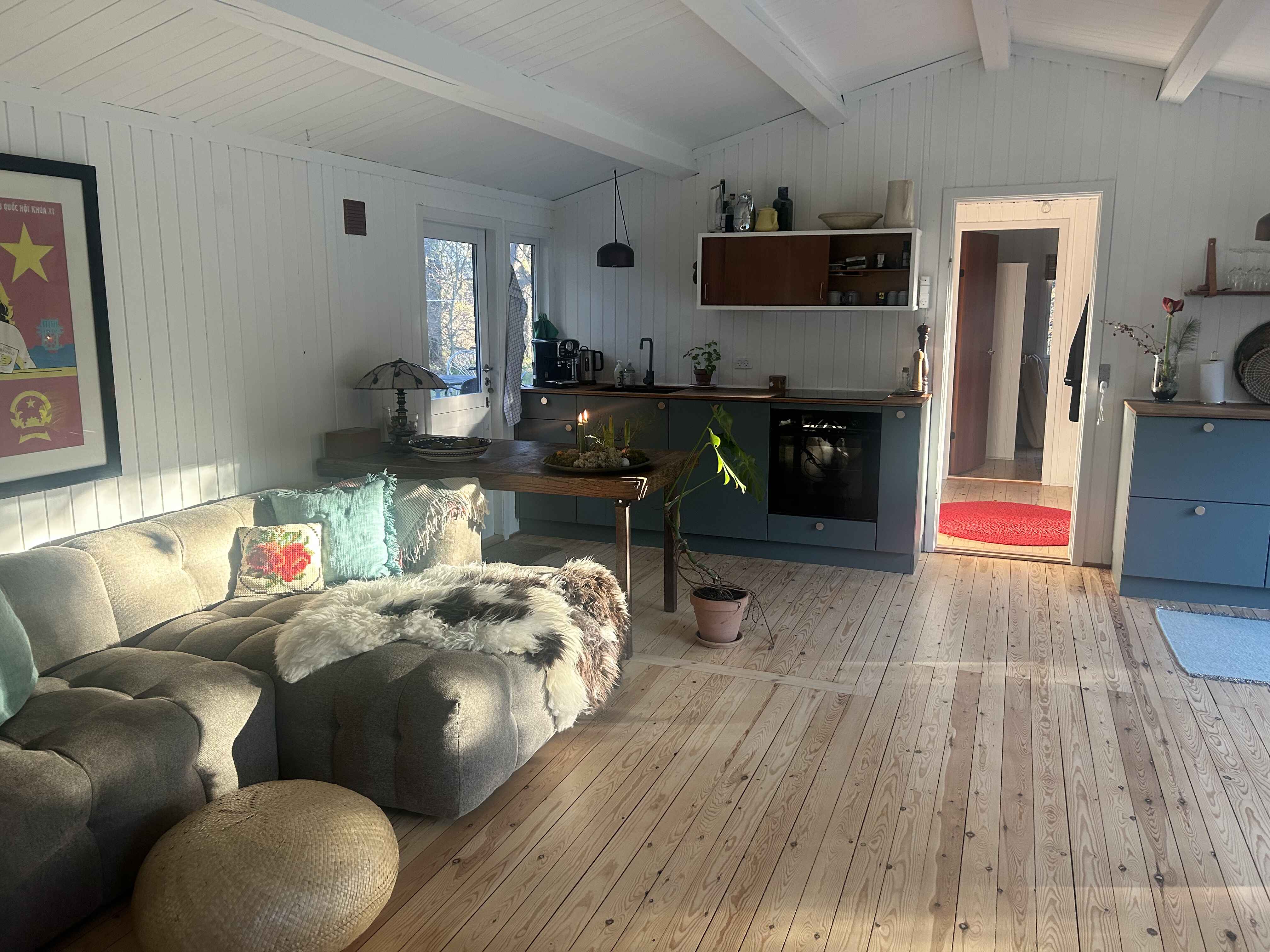 Huset har 4 soveværelser og 8 sovepladser, hvilket gør det velegnet til familier eller vennegrupper. Indretningen er enkel og funktionel med fokus på, at alle kan føle sig hjemme og finde plads til både samvær og privatliv.