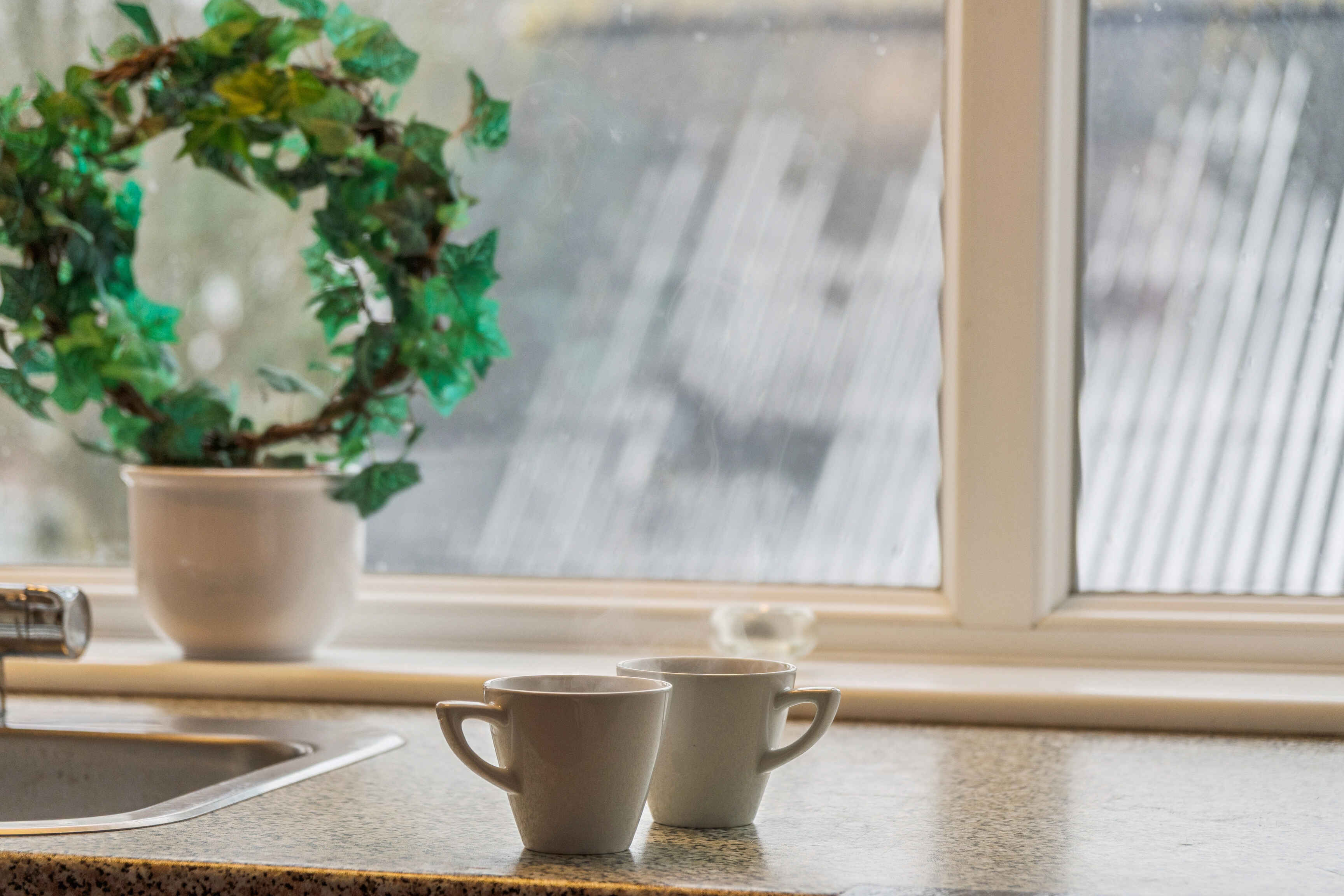 Indretningen er enkel og funktionel med fokus på ro og nærvær. Fra opholdsområdet er der udsigt til skoven, som giver en behagelig baggrund for feriedagene og understøtter lejlighedens afslappende tema.