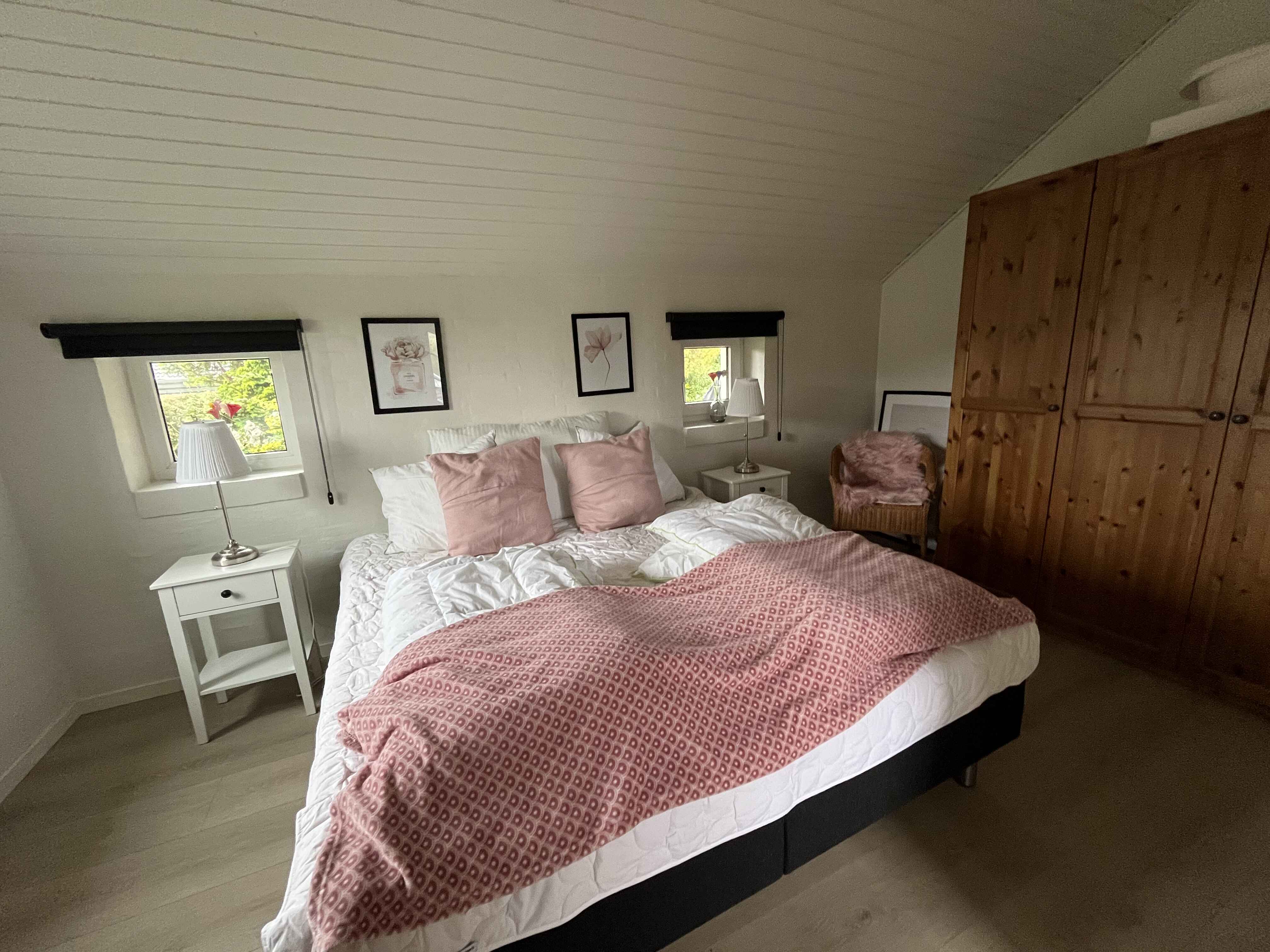 Dette dejlige sommerhus er på 100 m2, samt 20 m2 udestue. Huset består af en entré med vaskemaskine og fryser. Der er tre gode, rummelige soveværelser med nye kvalitetssenge og mørklægningsgardiner.