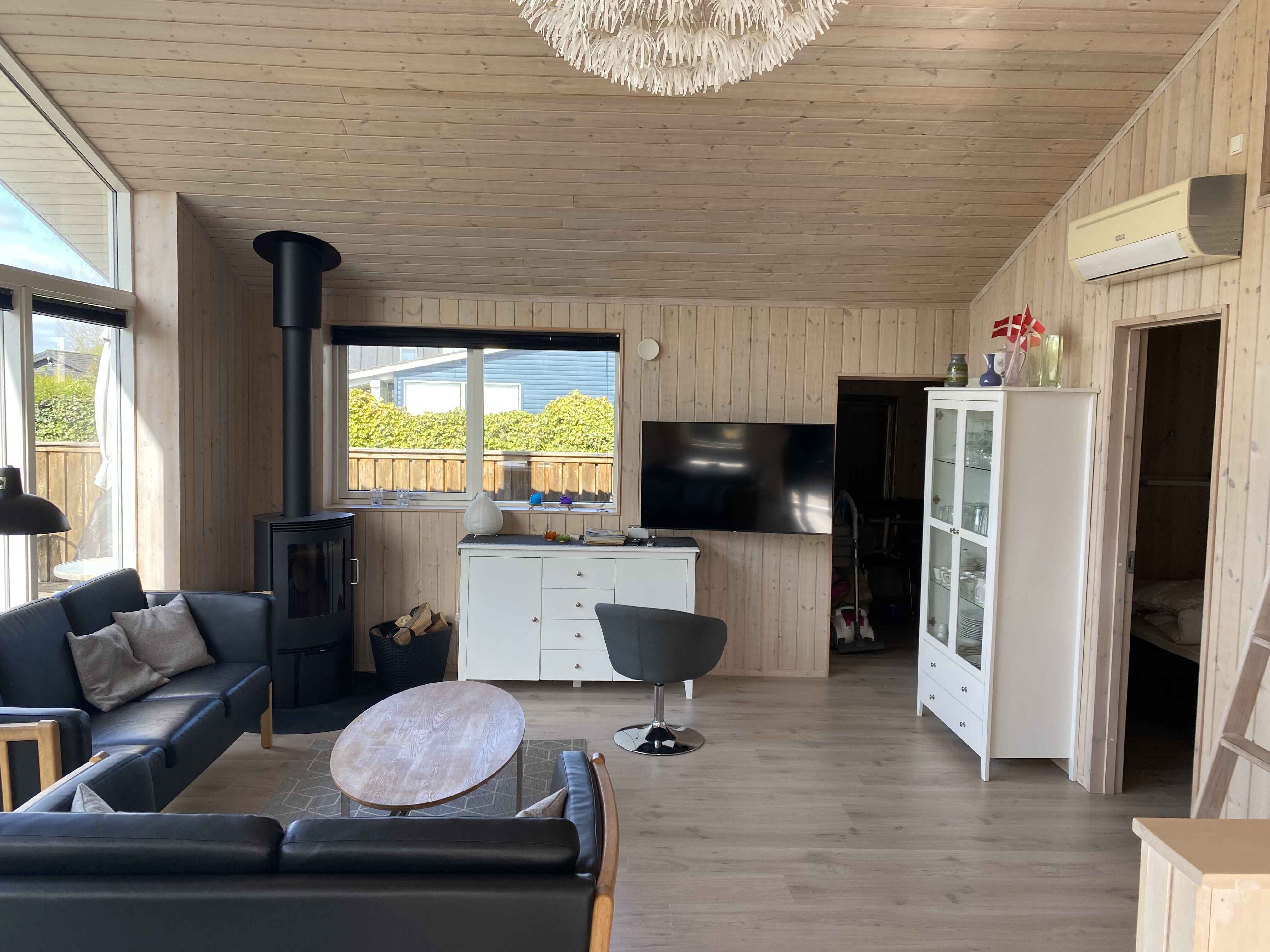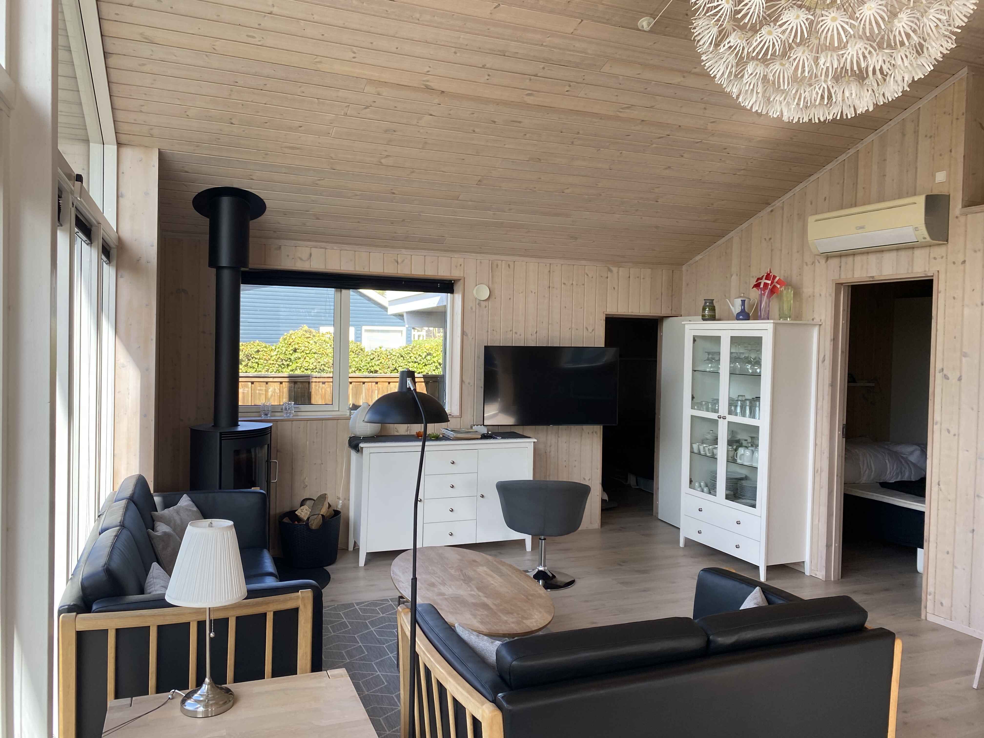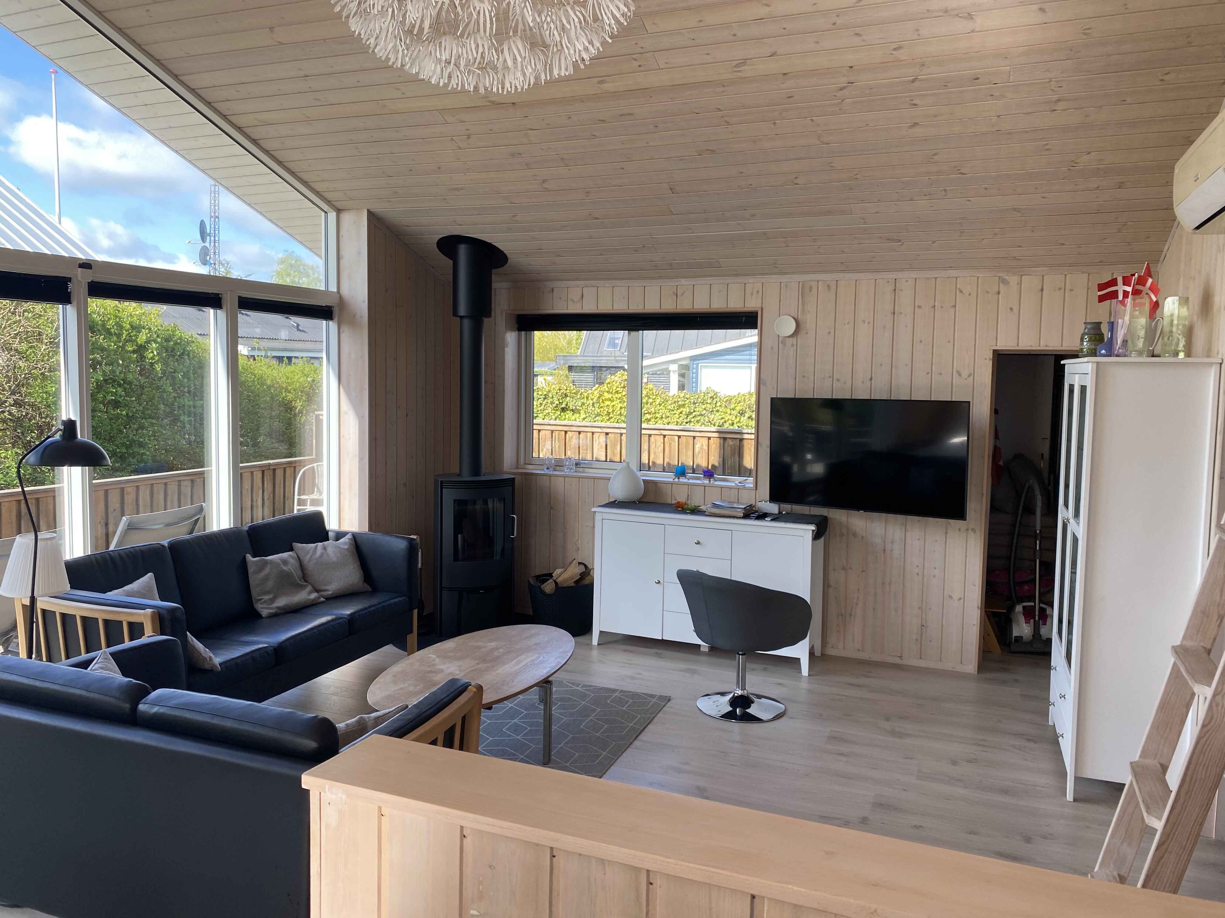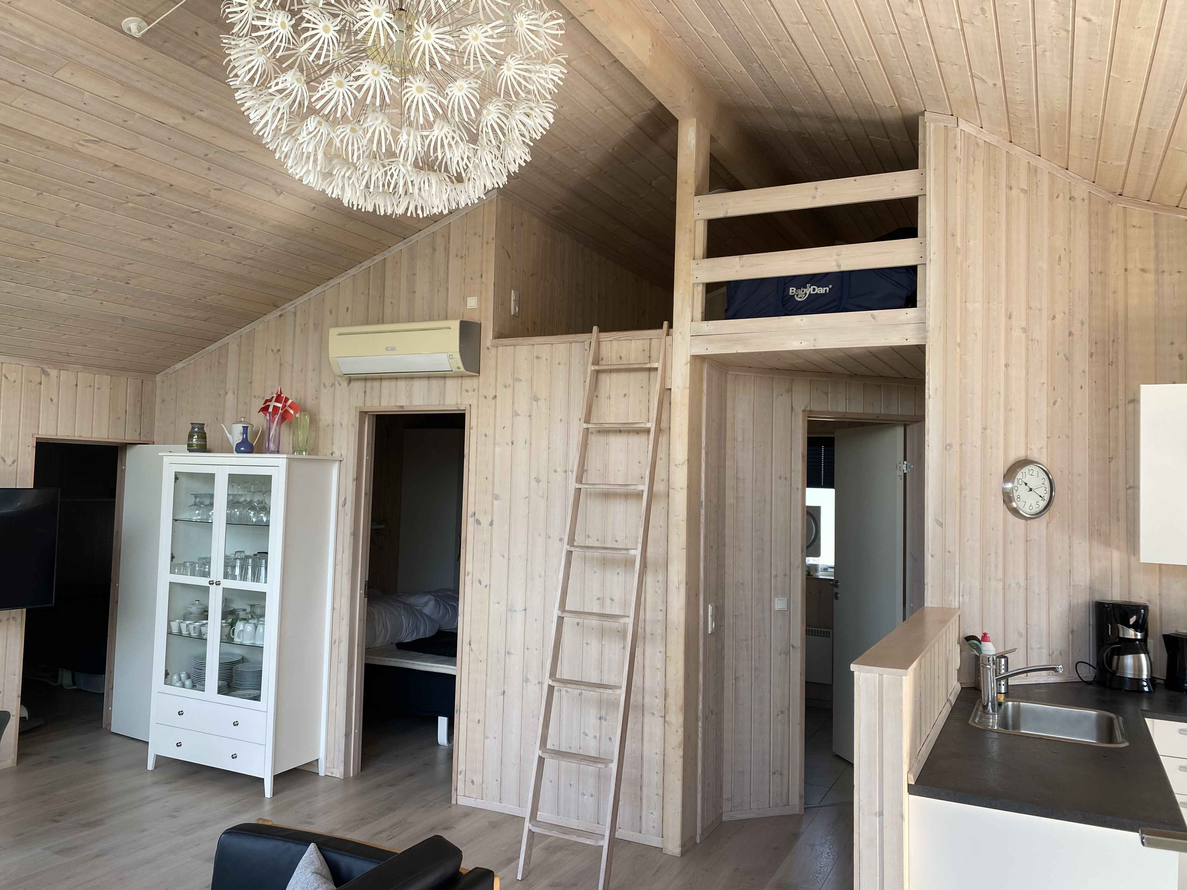 Huset har loft til kip og er praktisk indrettet med et stort lyst rum, hvor der er køkken, spiseplads og siddegruppe. Køkkenet har komfur med 4 kogeplader og varmluftsovn, mikroovn, køle/fryseskab og opvaskemaskine.