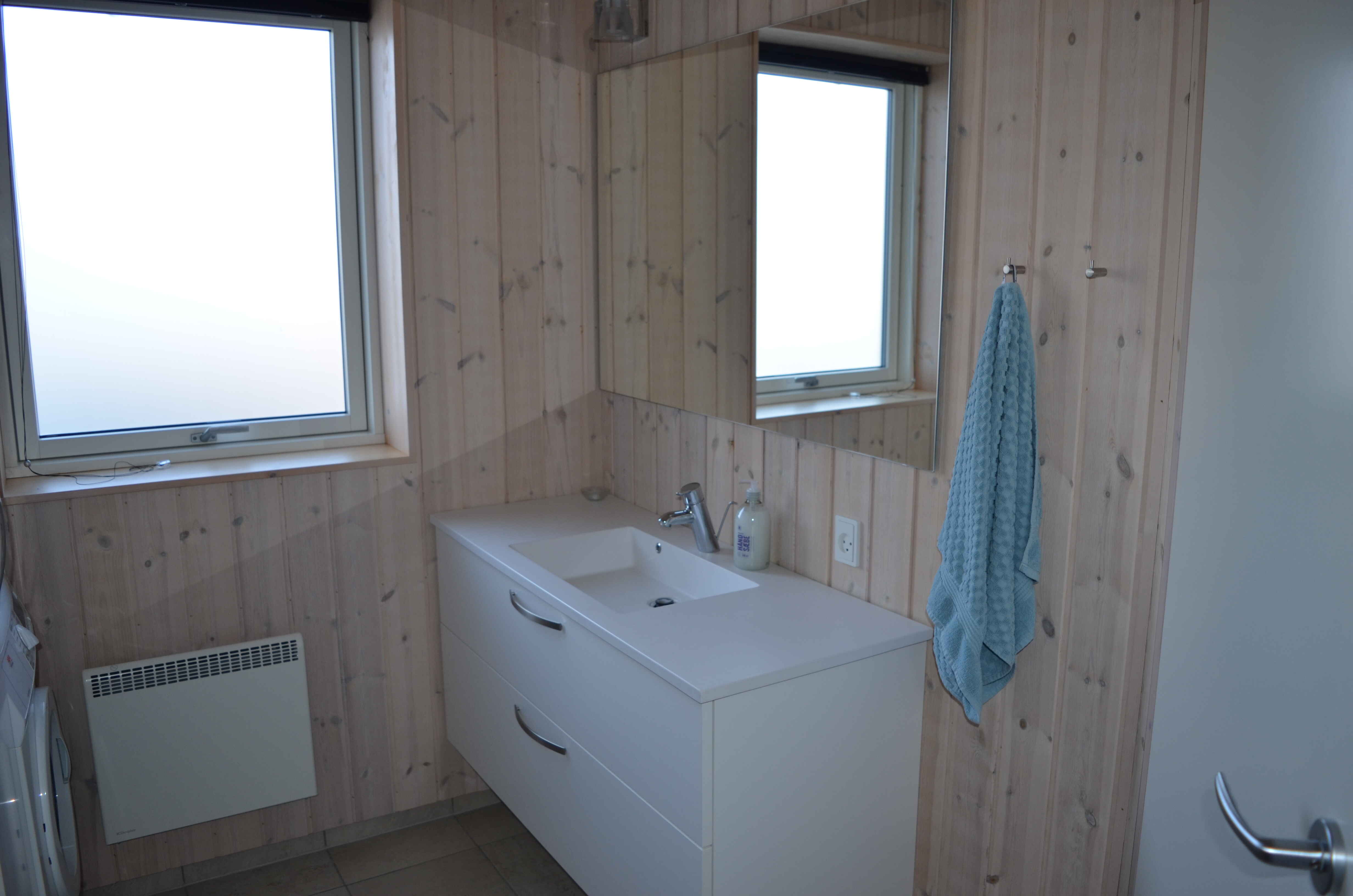 Huset har vaskemaskine og tørretumbler. Der er også en energibesparende varmepumpe og en brændeovn, så udgiften til opvarmning kan holdes nede. Er det meget varmt om sommeren, kan varmepumpen også køle huset ned.