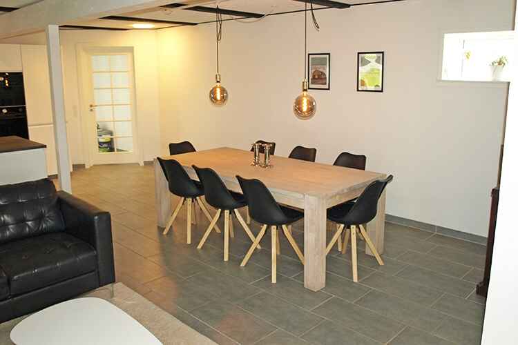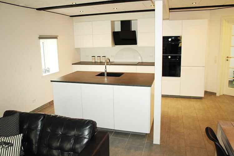 Her er et lækkert, nyt og stilrent køkken med bl.a. opvaskemaskine og mikrobølgeovn i åben forbindelse med stuen, der er indrettet med gode møbler og har TV med tyske kanaler. Her er en barnestol til rådighed.