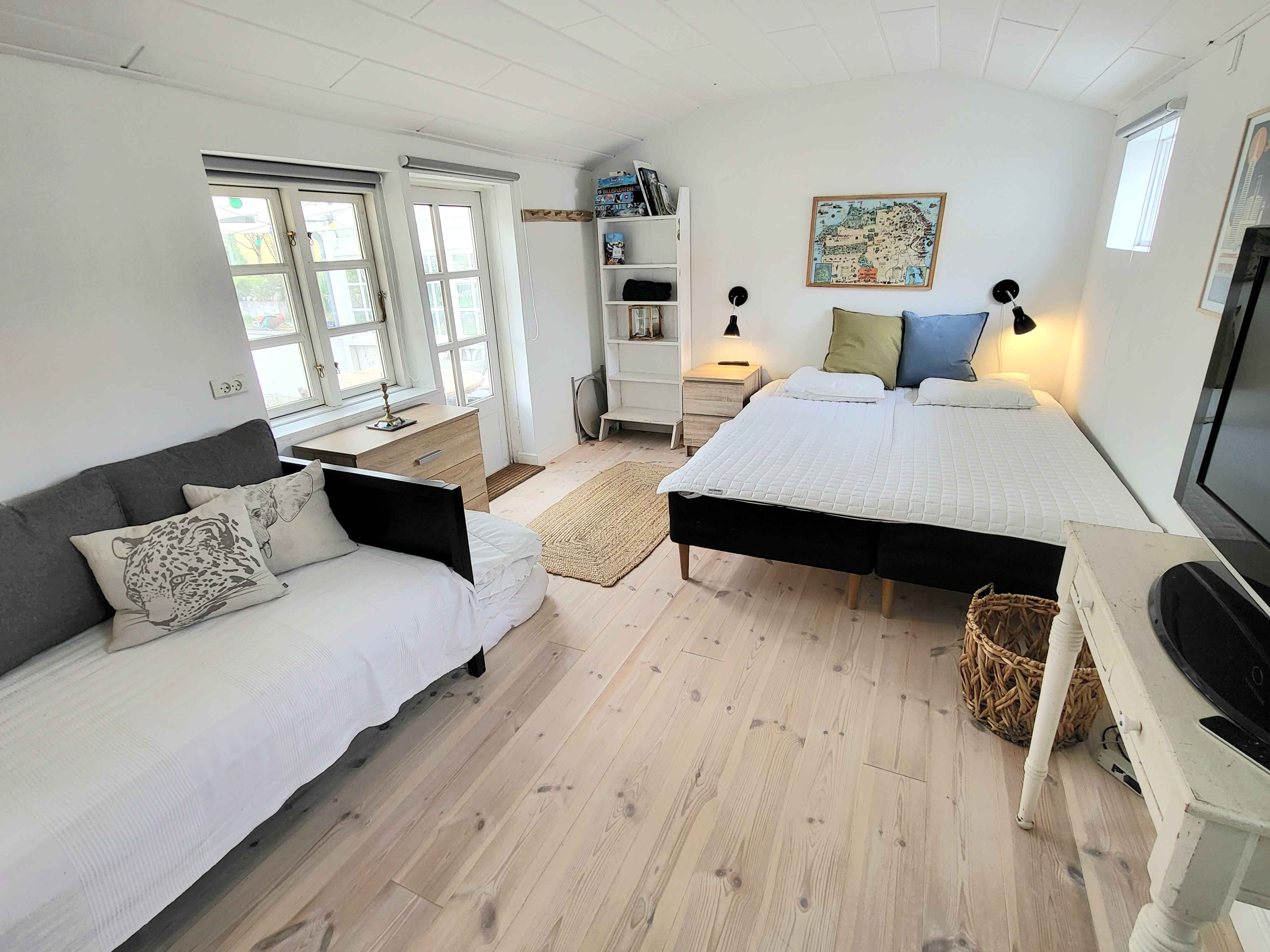 Den rummelige gårdhave venter med en gasgrill og plads til op til 10 personer omkring bordet. Indvendigt møder du et lyst og venligt hjem, nyrenoveret med et moderne køkken og en stor stue, hvor en hyggelig brændeovn skaber en indbydende atmosfære. Tre soveværelser ovenpå giver komfortabel indkvartering, mens et stort gæsteværelse nedenunder, udstyret med en dobbeltseng og en enkeltseng, fungerer som et praktisk anneks med sin egen indgang og direkte adgang til huset.